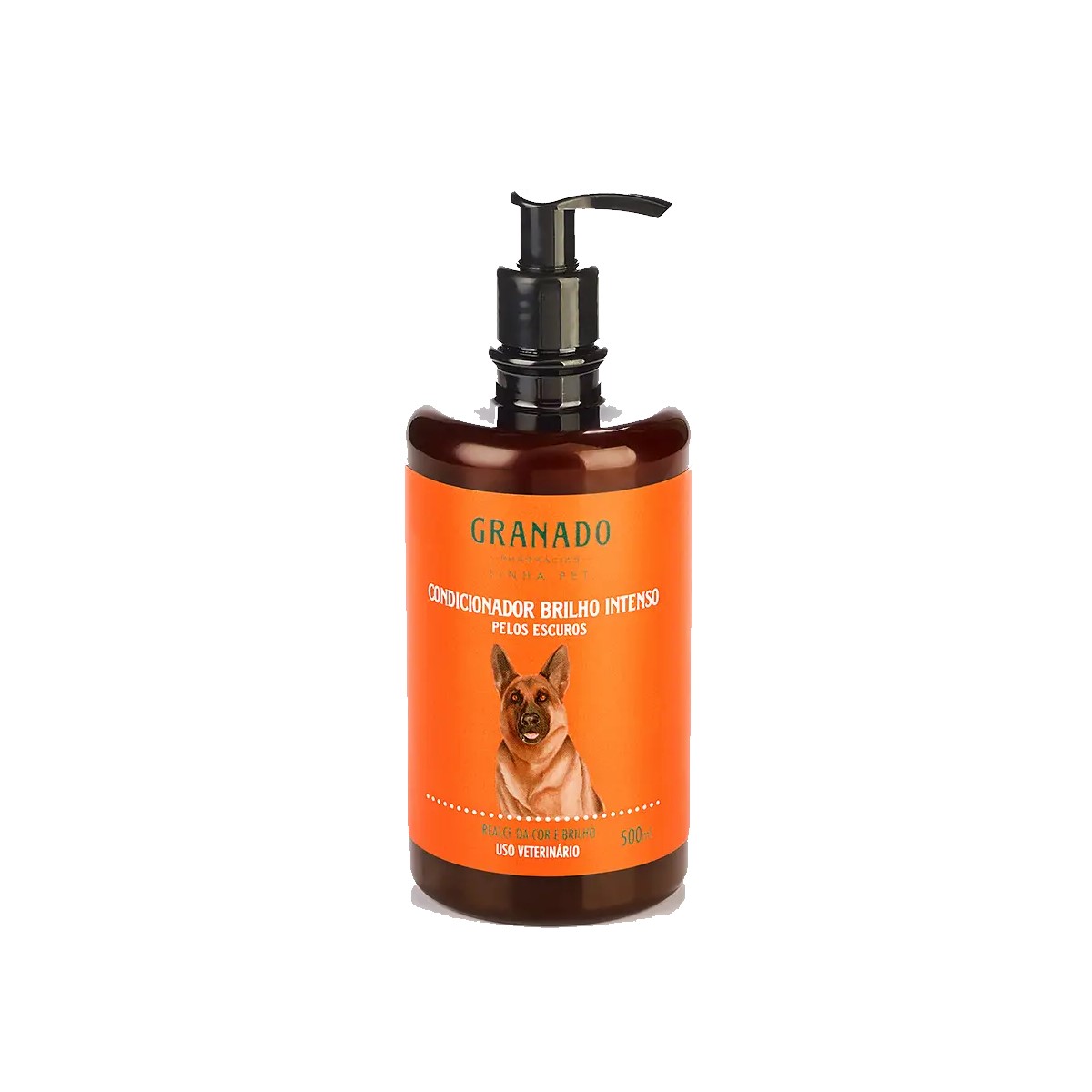 Condicionador Brilho Intenso é indicado, principalmente, para cachorros e gatos de pelos escuros.<br /> <br /> O condicionador para pet é formulado com extrato de nogueira e manteiga de karité, que promovem brilho intenso, hidratação e realçam a cor de pelagens escuras, além de deixar o seu melhor ainda suavemente perfumado. <br /> <br /> O melhor condicionador para seu cachorro! Após o uso do Shampoo Pet Granado, aplique a quantidade deseja do condicionador sobre a pelagem molhada, massageando por alguns minutos. Em seguida, enxágue abundantemente. <br /> <br />