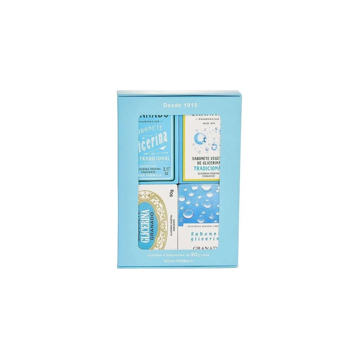 Criado em 1915, o primeiro sabonete de glicerina da Granado é um dos carros-chefes da marca até hoje.<br /> <br /> Considerado o primeiro sabonete no Brasil a usar gordura vegetal na sua produção, abolindo o uso da gordura animal, a fragrância Tradicional deu início a toda a linha Glicerina da Granado. <br /> <br /> Em edição limitada, o Kit celebra a história do icônico sabonete da Granado com quatro unidades da fragrância Tradicional.<br /> <br /> Cada um conta com uma embalagem especial que presenta uma época importante desde o início da sua criação: 1994, 1999, 2006 e 2018. Pensado especialmente para ser um presente colecionável! <br /> <br /> O sabonete em barra de glicerina para o corpo e mãos tem base vegetal e 76% de ingredientes de origem natural, além da glicerina também de origem natural, que hidrata e limpa suavemente a pele.<br /> <br /> Produto vegano.<br /> <br /> Não testado em animais.<br /> <br /> Essa composição contém:<br /> <br /> 4 - Sabonetes em Barra de Glicerina de 90g cada.<br /> <br /> Livre de parabenos.<br /> <br /> Conteúdo: 4 sabonetes de 90g.