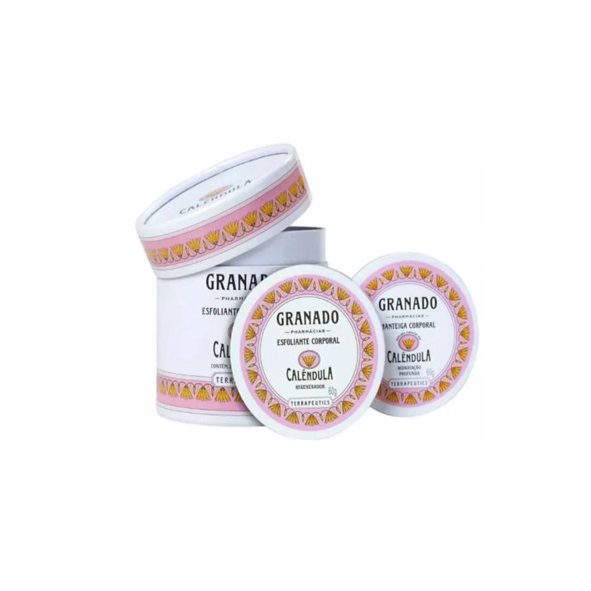 Kit com produtos para um tratamento completo da pele.<br /> <br /> O extrato natural de calêndula acalma a pele. Inicie com a esfoliação, para promover a regeneração celular e deixar apele mais macia. Finalize com a manteiga, para uma hidratação profunda. Embalagenspráticas para levar no nécessaire.<br /> <br /> Livre de parabenos, corantes e ingredientes de origem animal.<br /> <br /> Contéudo: 2 x 60g.<br /> <br /> <br /> Inicie com a esfoliação, para promover a regeneração celular e deixar apele mais macia. Finalize com a manteiga, para uma hidratação profunda.
