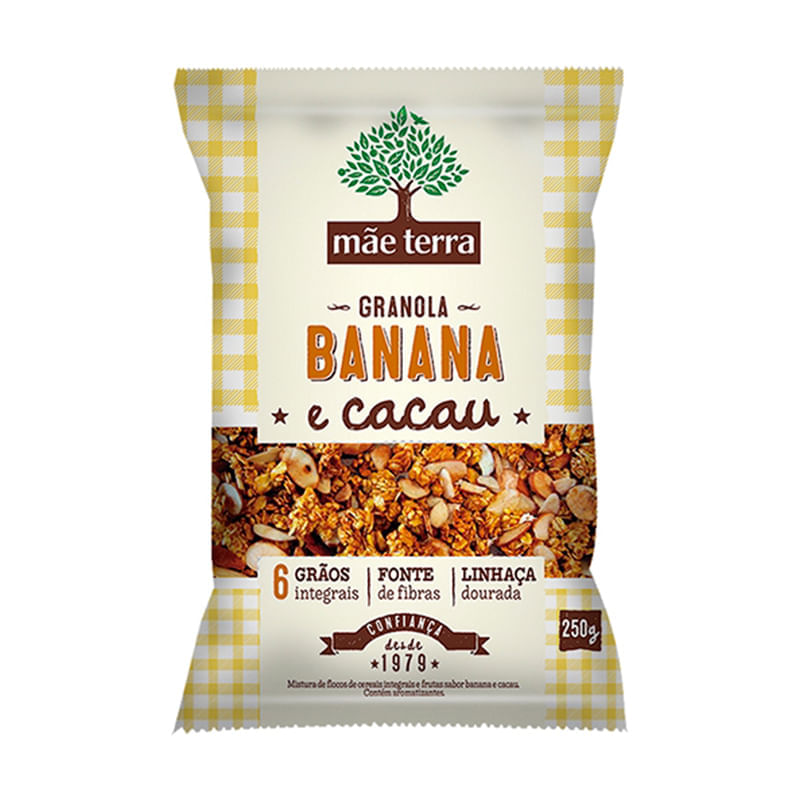 <p>Informações técnicas do produto:<br>Granola banana e cacau da Mãe Terra é elaborada com ingredientes integrais, como a aveia e farelo de trigo, naturalmente ricos em fibras. Além disso, contém frutas, linhaça dourada e cacau em pó, sendo uma excelente opção para enriquecer seus lanches.<br><br>Por que escolher esse produto?<br>Com aromas naturais<br>Sem aditivos químicos<br>Com banana passa, maçã e coco<br>Sem lactose<br>Livre de corantes<br>Baixo teor de sódio<br>Recomendação de consumo:<br>Pode ser adicionado em frutas diversas, açaí, ou até utilizado em receitas.<br><br>Sobre a marca: <br>A Mãe Terra acredita que uma alimentação saudável, é composta por alimentos mais naturais e integrais, por isso os produtos são feitos com ingredientes que fazem bem para o corpo, não tendo adição de ingredientes artificiais. Atualmente é líder no segmento de alimentos naturais e orgânicos no Brasil.</p>