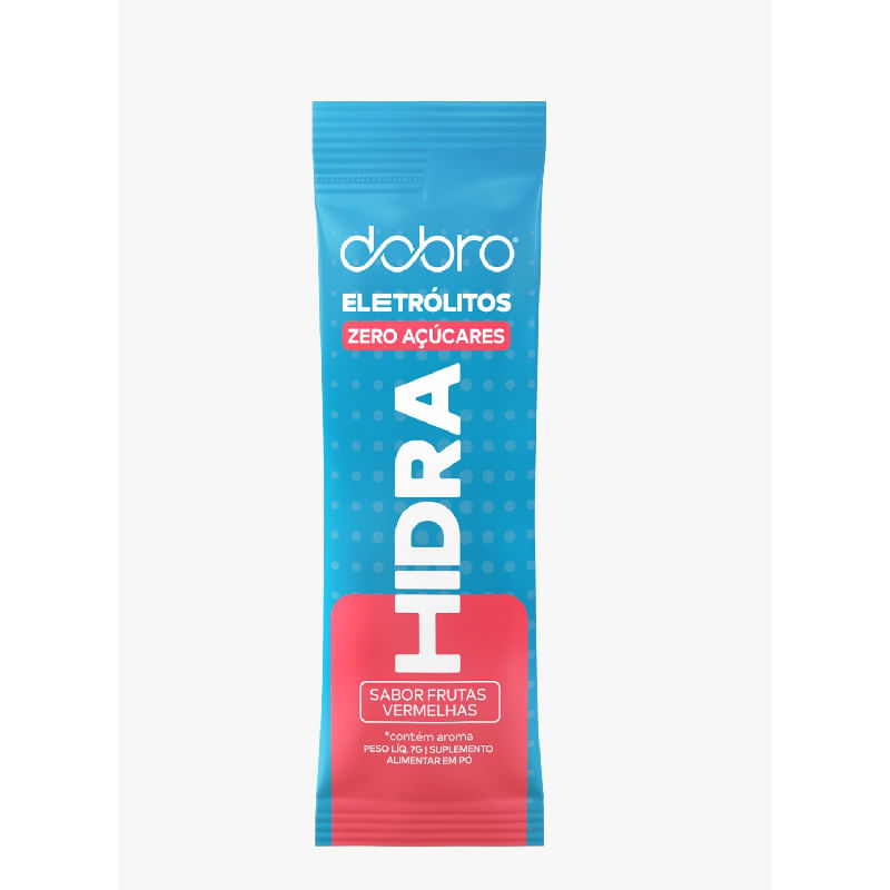 <p dir="ltr">O <strong>Hidra Eletrólitos</strong> <strong>sabor frutas vermelhas da Dobro</strong> é uma forma prática e saborosa de ajudar na hidratação e no equilíbrio de minerais essenciais. Cada sachê fornece um mix de nutrientes importantes como sódio, potássio e magnésio, colaborando com a reposição do que foi perdido através do suor.<br>A fórmula inclui ingredientes naturais, como água de coco em pó, frutas vermelhas (morango, amora e framboesa) e melão em pó, e é zero adição de açúcar.</p> <h2 dir="ltr">Sugestão de consumo:</h2> <p dir="ltr">Recomenda-se diluir 1 sachê (7 g) em 300 a 500 ml de água gelada. Perfeito para consumir antes, durante ou após os treinos, ou em dias de calor excessivo e de maior desgaste físico ou conforme recomendação profissional. </p> <h2 dir="ltr">Motivos para escolher o produto:</h2> <ul> <li dir="ltr" aria-level="1"> <p dir="ltr" role="presentation">Enriquecido com vitamina C;</p> </li> <li dir="ltr" aria-level="1"> <p dir="ltr" role="presentation">Com água de coco e frutas vermelhas em pó;</p> </li> <li dir="ltr" aria-level="1"> <p dir="ltr" role="presentation">Adoçado naturalmente com stévia;</p> </li> <li dir="ltr" aria-level="1"> <p dir="ltr" role="presentation">Sem glúten e sem lactose;</p> </li> <li dir="ltr" aria-level="1"> <p dir="ltr" role="presentation">Sachê individual, fácil de levar e usar.</p> </li> </ul> <h2 dir="ltr">A Marca</h2> <p dir="ltr">A <strong>Dobro </strong>foi fundada em 2018 através de um projeto de TCC da faculdade, a marca tem o propósito de nutrir relacionamentos com o mundo, buscando melhorias pessoais, sociais e ambientais. Os produtos da Dobro são desenvolvidos cuidadosamente por profissionais da saúde, atletas e clientes, combinando os benefícios de ingredientes naturais com sabor e tecnologia.</p> <p> </p>