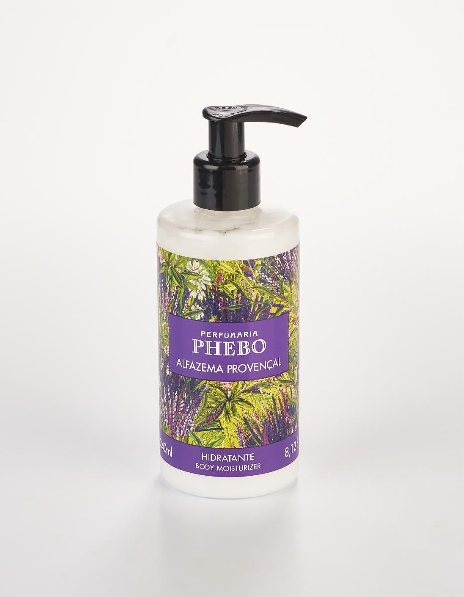 Alfazema Provençal é a fragrância clássica da Perfumaria Phebo. Seu perfume aromático, canforado e floral é arrematado por notas de fundo amadeiradas, compondo uma criação delicada e confortável.O hidratante corporal tem alta concentração de perfume para garantir uma pele perfumada por mais tempo.Ideal para corpo e mãos ressecadas, a loção hidratante para o corpo de Phebo tem ação umectante, que protege a pele contra a perda de umidade, e mantém a umidade natural do corpo, proporcionando toque sedoso e aspecto saudável.A embalagem em ‘pump’ acompanha a identidade visual da linha Origens, com ilustração exclusiva do designer Gabriel Azevedo.Sua fórmula é à base de ativos vegetais e livre de parabenos e corantes.Produto vegano.Não testado em animais.Conteúdo: 240ml.