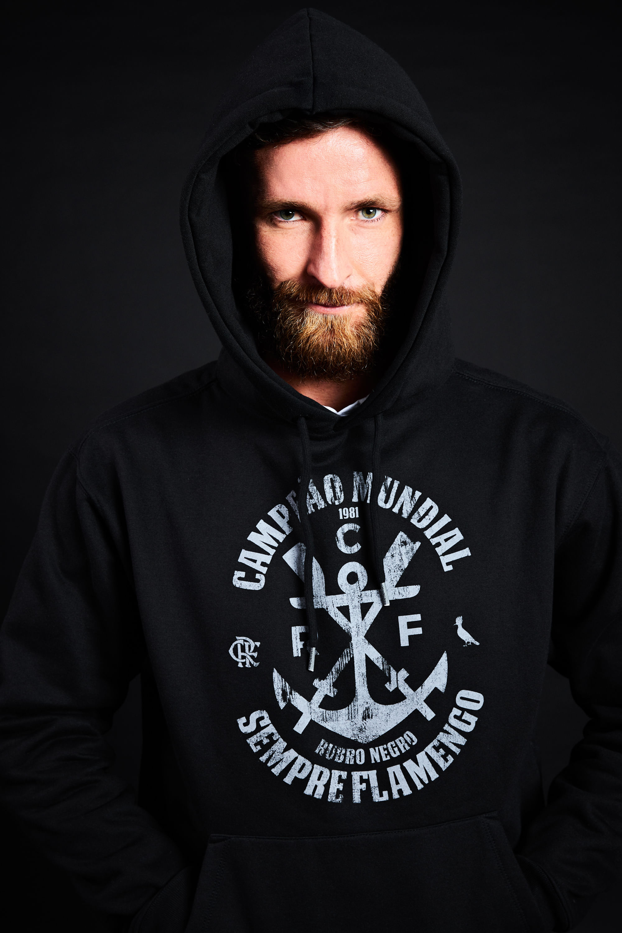 Quando chegar o friozinho, o Hoodie de Moletom Campeão Mundial é a escolha pra todo rubro-negro que se orgulha de uma das maiores conquistas da história do Mengão. Em moletom, a peça traz um brasão estampado na parte da frente, que faz menção à conquista do título. No detalhe, o capuz tem uma etiqueta vermelha e preta, com o Pica-Pau da Reserva. Casaco produzido eticamente no Brasil. Comprando esta peça, você viabiliza cinco pratos de comida através do nosso programa 1P5P. O modelo tem 1,90 m de altura, 95 cm de tórax e veste 40.