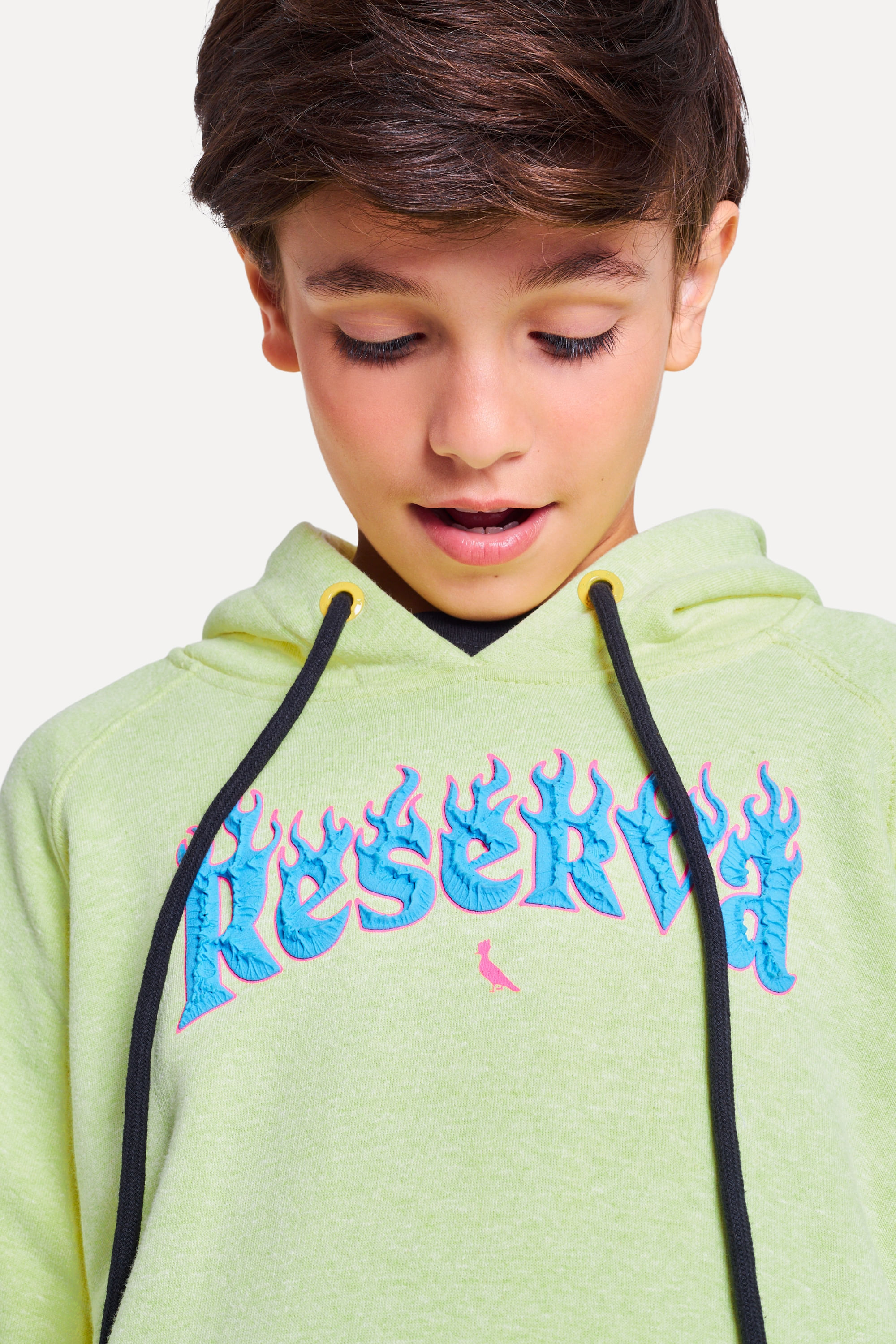 Casaco da linha infantil Reserva Mini. O modelo em moletom ganhou capuz, bolso canguru e assinatura com silk em gel. A modelagem oversized é perfeita para maior conforto e vestibilidade! Produzido eticamente no Brasil. Comprando esta peça, você viabiliza cinco pratos de comida através do nosso programa 1P5P.