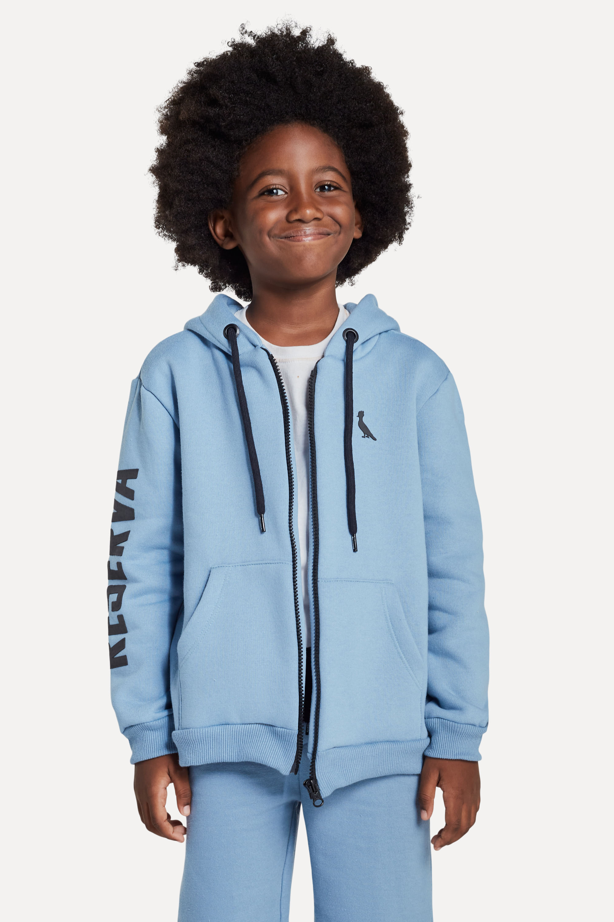 Casaco da linha infantil Reserva Mini. O modelo em moletom ganhou capuz, zíper, bolso canguru e assinatura com silk em relevo. A modelagem oversized é perfeita para maior conforto e vestibilidade! Produzido eticamente no Brasil. Comprando esta peça, você viabiliza cinco pratos de comida através do nosso programa 1P5P.