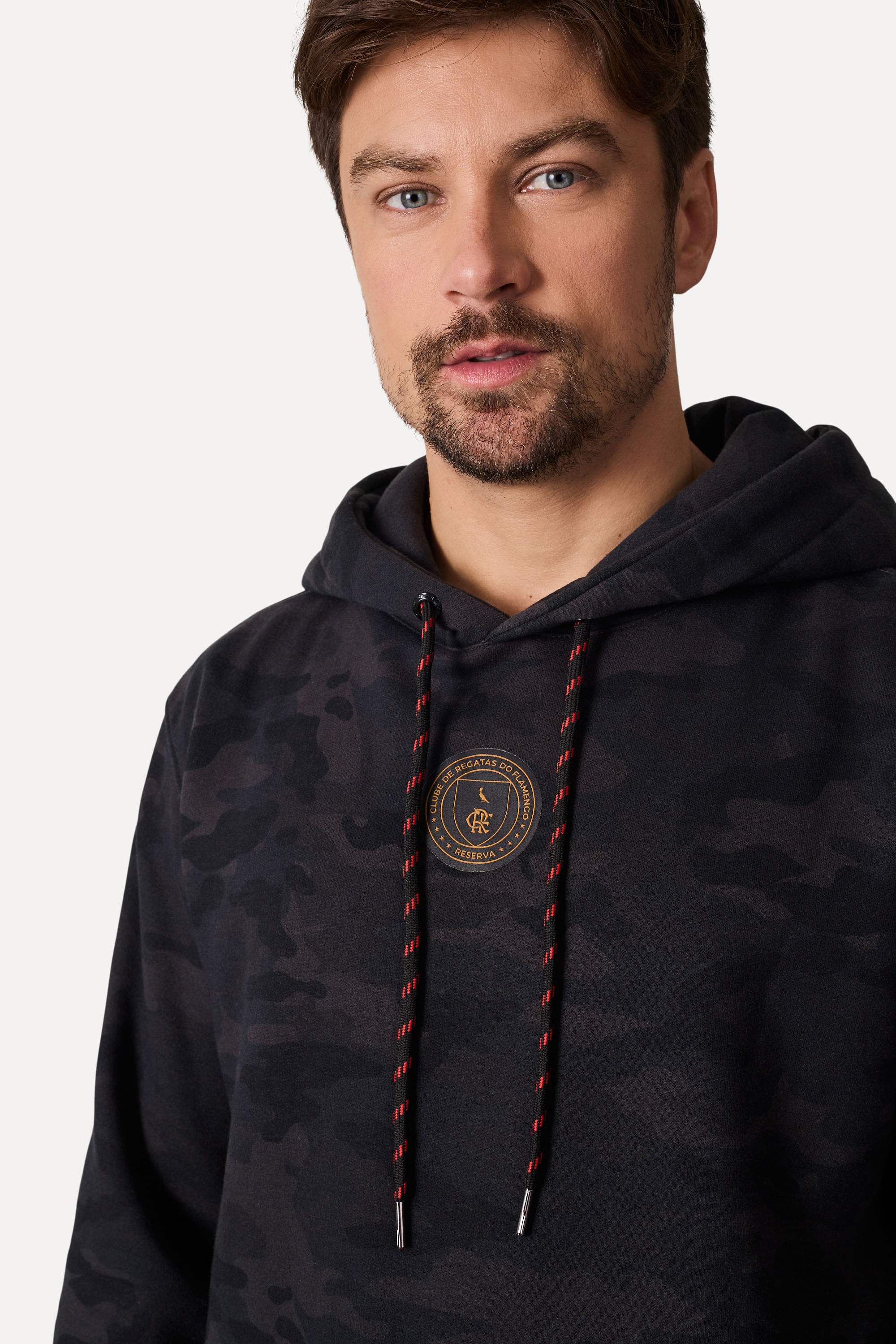 Leve seu amor pelo Mais Querido por onde for com o Hoodie Moletom Estampado Camuflado FLA! No estilo camuflado, possui duas opções de tons de cores. Possui capuz com regulagem em corda, manga longa e bolso estilo canguru. No meio, leva o patch da Reserva + Flamengo.Combine com camisetas, calças e tênis. O modelo tem 1,86 de altura, 95 de tórax e veste 42. Comprando esta peça, você viabiliza cinco pratos de comida através do nosso Programa 1P5P. Hoodie produzido eticamente no Brasil.
