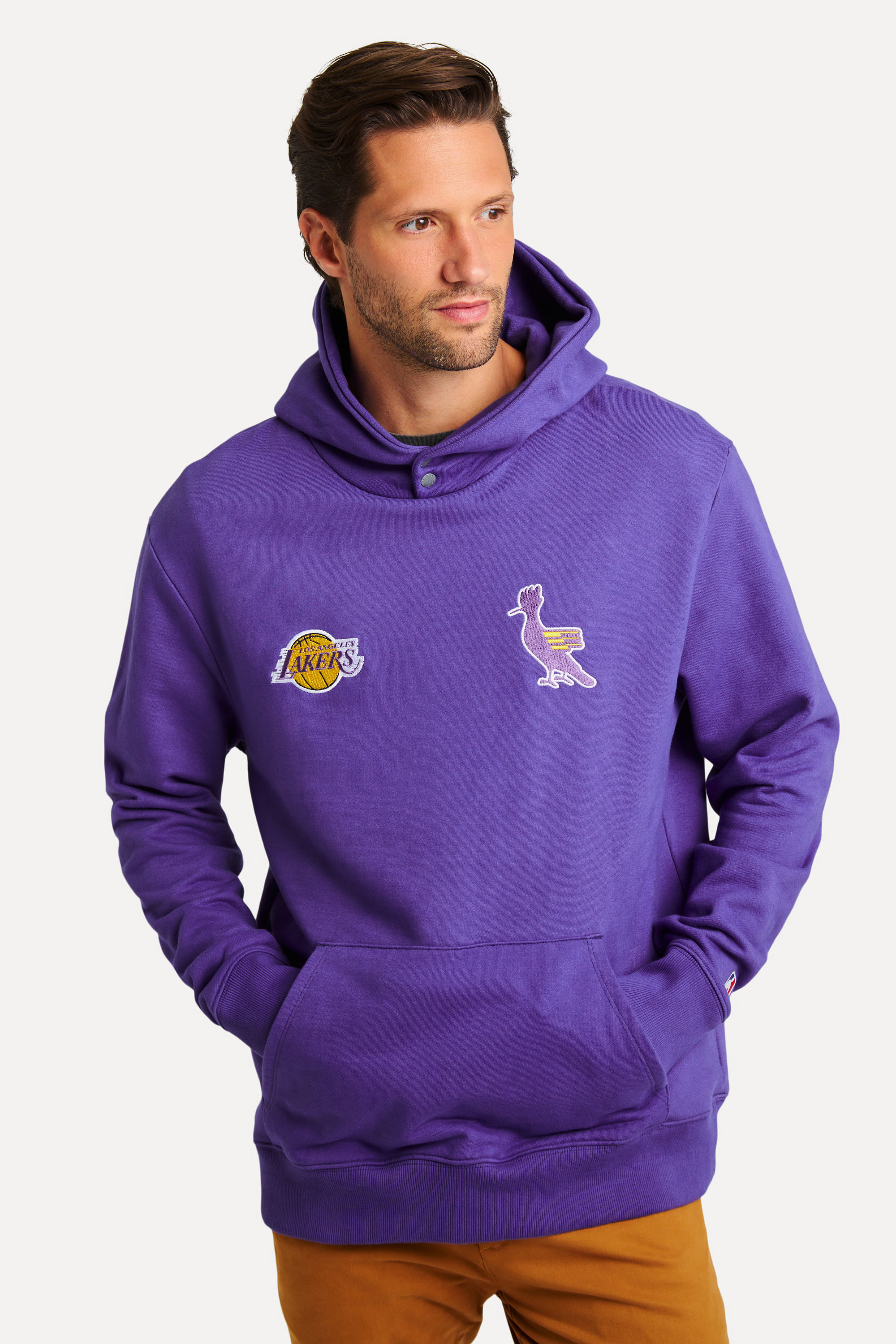 O Hoodie Moletom Reserva Lakers é indicado pra ser usado nos dias frios. Possui bolso canguru e capuz com fechamento por botões. Feito em 100% algodão, garantindo conforto e maciez. A peça possui estampa bordada exclusiva e faz parte da nossa collab com a NBA. Além disso, tem patches nas mangas e etiquetas produzidas especialmente para esta colaboração. Hoodie Reserva produzido eticamente no Brasil. Comprando esta peça, você viabiliza cinco pratos de comida através do nosso programa 1P5P.