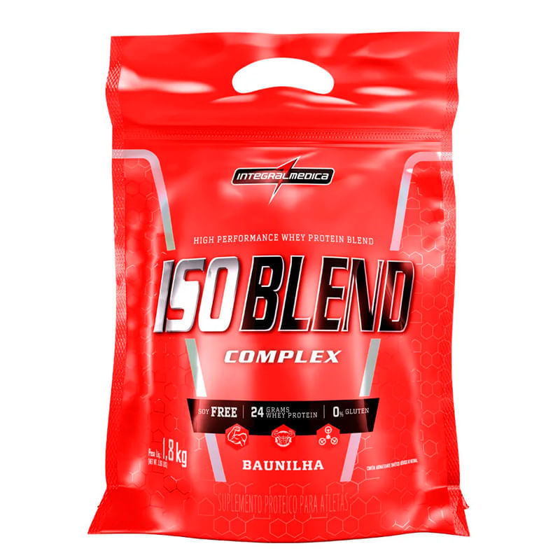 <p>O <strong>Iso Blend pouch Baunilha Integralmedica 907g</strong>, é um suplemento alimentar indicado aos praticantes de qualquer atividade física.</p> <p>Se você pratica qualquer esporte e necessita manter o seu corpo abastecido de proteínas de alto valor biológico, Iso Blend é a melhor opção para o seu objetivo.</p> <p>Um suplemento a base de Whey Protein com baixo teor de sódio e alta concentração de BCAA. Esse é o grande diferencial do ISO Blend; Além de conter as proteínas essenciais para o bom funcionamento do corpo, Iso Blend integralmedica oferece ao consumidor uma alta quantidade de aminoácidos. Os aminoácidos são responsáveis pelo processo de reconstrução muscular pós-treino e evitam a perda da massa magra.</p> <p>Iso Blend oferece 24g de proteínas por porção, e apresenta as frações de Whey Protein Concentrado, Whey Protein Isolado e Whey Protein Concentrado, uma combinação perfeita que resulta em um poderoso blend proteico.</p> Sobre os ingredientes: <p>O melhor da proteína concentrada do soro de leite, maltodextrina, proteína isolada do soro do leite, proteína hidrolisada do soro do leite, aroma conforme o sabor, ácido cítrico (acidulante), goma xantana (espessante), sucralose e acessulfame-K (edulcorantes) e bordeaux (corante). Alergênicos: Contém derivados do leite e soja. Não contém Glúten. Contém aromatizante sintético idêntico ao natural. Colorido artificialmente.</p> Sugestão de consumo: <p>Diluir 2 scoops (40 g) de ISO BLEND em 250ml de água, de preferência gelada. Consumir após o treino ou conforme orientação profissional.</p> Motivos para escolher o produto: <ul> <li> <p>Baixo teor de sódio</p> </li> <li> <p>Alta concentração de BCAA</p> </li> <li> <p>24g de proteínas por porção</p> </li> <li> <p>Não contém Glúten</p> </li> </ul> Sobre a marca: <p>Com mais de 30 anos de história, a <strong>Integralmédica</strong> foi a pioneira em suplementação esportiva no Brasil e, desde o primeiro momento, imprimiu uma marca de inovação e excelência em produção e pesquisa. Seus produtos de qualidade premium carregam, além da mais alta tecnologia, o DNA de uma empresa altamente comprometida com desempenho, saúde e bem-estar</p>