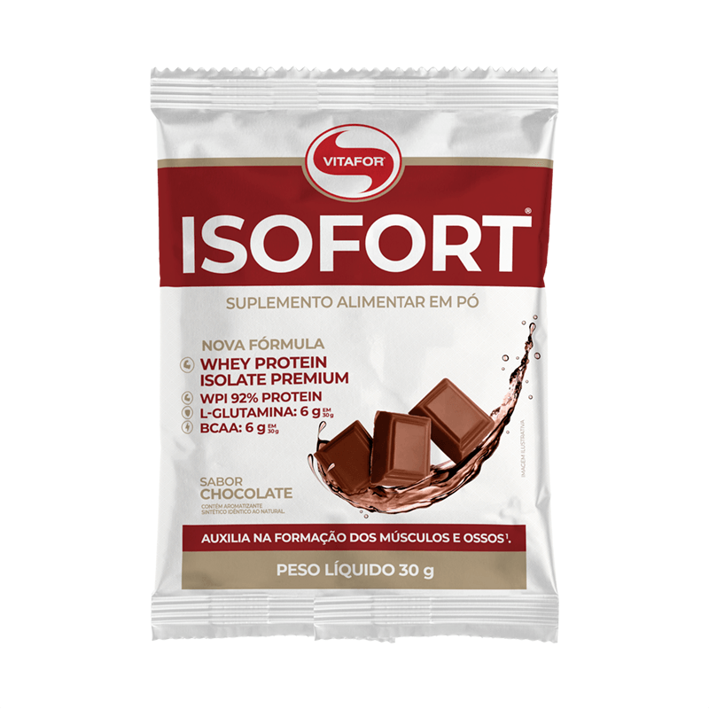 <p>O <strong>Isofort Chocolate Vitafor </strong>, é um suplemento em pó à base de proteína isolada do soro do leite (Whey protein isolada) não desnaturadas e parcialmente hidrolisadas, produzidas por um processo de extração de alta tecnologia.</p> Sugestão de consumo: <p>Dissolver 30g de Isofort em 300ml de líquido gelado (água, leite de soja ou suco) e tomar, preferencialmente, depois do treino.</p> Motivos para escolher o produto: <ul> <li> <p>92% de proteína</p> </li> <li> <p>100% Whey protein isolado</p> </li> <li> <p>Fornece 27g de proteínas</p> </li> <li> <p>Com cacau</p> </li> </ul> Sobre a marca: <p>A Vitafor é uma marca brasileira de suplementos alimentares com padrão de alta qualidade e eficácia, que valoriza o desenvolvimento sustentável, incorporando esse conceito a suas operações diárias. Os resíduos da fabricação dos produtos são mínimos, as embalagens utilizadas em todo o processo são recicladas e seus produtos são atóxicos, beneficiando a sua saúde e cuidando da natureza e do meio ambiente em parceria com a comunidade.</p>
