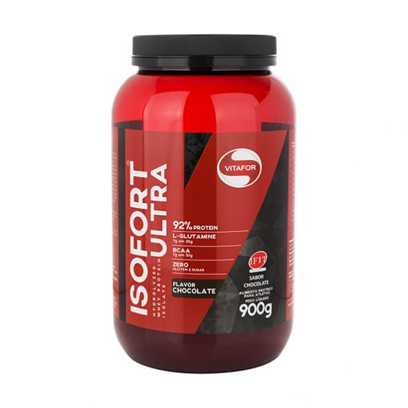 Informações técnicas do produto:<br> Isofort Ultra, Chocolate, da Vitafor é um suplemento à base de whey protein (proteínas do soro do leite) não desnaturada, isolada e hidrolisada. Combina a whey hidrolisada, uma proteína de rápida absorção. Possui ainda caseína micelar, e adição de um Mix de Enzimas proteolíticas Aminogen®.<br> <br> Recomendação de consumo:<br> Dissolver Isofort Ultra em líquido gelado e tomar, preferencialmente, logo após o treino.<br> <br> Por que escolher esse produto?<br> Possui 97% de proteína em sua composição<br> Sem adição de açúcar<br> Livre de conservantes<br> Sem glúten<br> Livre de corantes artificiais<br> Sobre a marca:<br> A Vitafor é uma marca brasileira de suplementos alimentares com padrão de alta qualidade e eficácia, que valoriza o desenvolvimento sustentável, incorporando esse conceito a suas operações diárias. Os resíduos da fabricação dos produtos são mínimos, as embalagens utilizadas em todo o processo são recicladas e seus produtos são atóxicos, beneficiando a sua saúde e cuidando da natureza e do meio ambiente em parceria com a comunidade.<br> A marca possui certificação internacional de qualidade e de origem dos óleos de peixe utilizados em seus produtos, e possui rigorosa análise e comprovação de testes de todos os lotes de seus produtos.<br> <br>