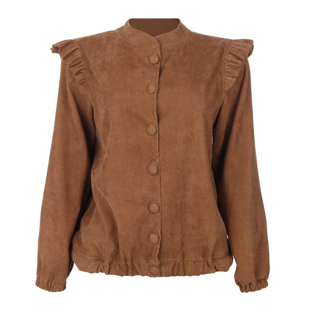 A Jaqueta bomber com botões em veludo Kaki é uma peça curinga do armário, quase indispensável durante o inverno, a versatilidade da peça é um ponto positivo que permite compor diferentes propostas.<br>A Jaqueta bomber aquele tecido que permite ser combinado a várias texturas quando combinada a camisas,ou blusas mais sequinhas para um office look como terceira peça com bota e nosso shorts de veludo pode fazer um lindo conjunto que fica perfeito com bota.<br>O Veludo foi trend nos anos 70 e voltou um ou a ser um hit nos anos 90 e hoje é um dos queridinhos entre as estilistas ,o material imprime um estilo clássico e ao mesmo tempo moderno com um toque glam ,além do visual o tecido que permite uma experiência sensorial de toque e ainda é super quentinho escolha os eu e arrase.<br><br>.<br>Produto: Jaqueta Bomber<br>Tecido: P.U<br>Código: BOM2204<br>Categoria: Jaquetas.<br>Tecido: Veludo Cotele <br>Cor: Caqui<br>Gênero: Feminino.<br>Marca: Vértice.<br>.<br><br>Medidas.<br>P - Busto até 90 cm l Cintura até 71 cm l Quadril até 99 Cm.<br>M - Busto até 96 cm l Cintura até 77 cm l Quadril até 102 cm.<br>G - Busto até 102 cm l Cintura 83 cm l Quadril 111 cm.<br>GG - Busto 108 cm l Cintura até 89 cm l Quadril até 117 cm.<br>EGG - Busto até 114 cm l Cintura até 95 cm l Quadril até 123 cm.<br><br>