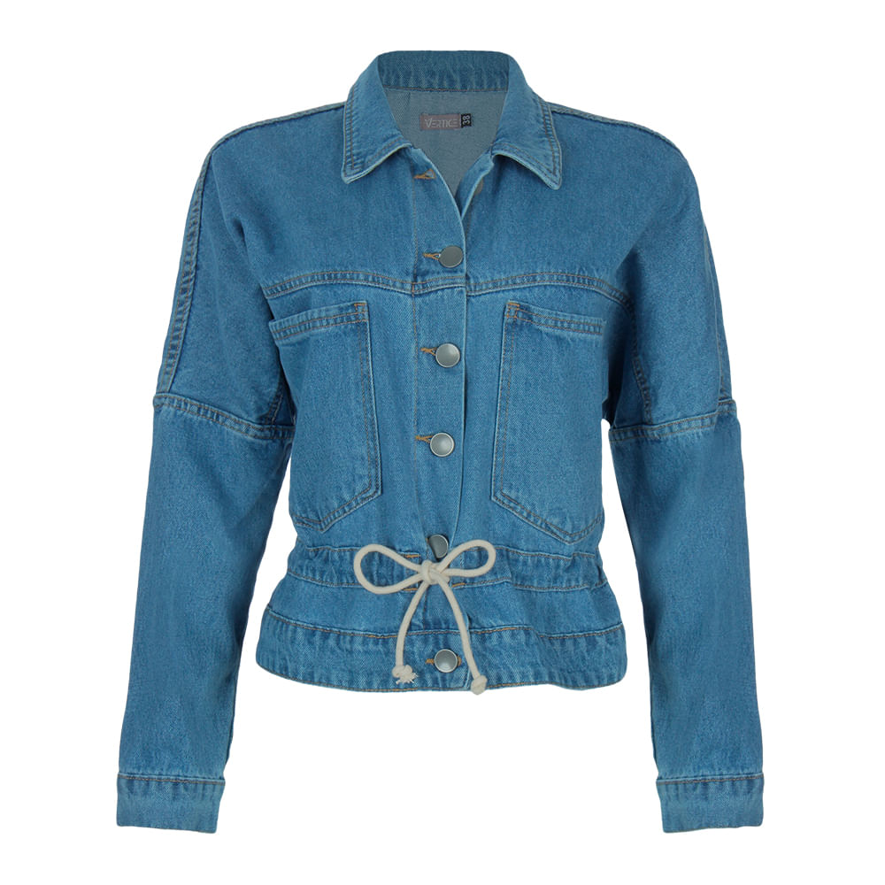 A Jaqueta Jeans com botões e amarração é uma peça curinga do armário, quase indispensável durante o inverno, a versatilidade da peça é um ponto positivo que permite compor diferentes propostas.<br><br>A Jaqueta Jeans com botões aquele tecido que permite ser combinado a várias texturas quando combinada a camisas, ou blusas mais sequinhas para um office look como terceira peça com bota ou tênis, shorts ,calça skinny ,até mesmo com vestidos ,seja qual for a sua escolha você vai arrasar.<br>Em 1860 a lona foi trocada pela serge Nimes (o Denim), um tecido de algodão sarjado bem resistente e grosseiro que era destinado a roupas dos escravos negros do sul,alguns anos mais tarde foi tingido com um corante de uma planta chamada indigus,,que deu a cor azul ao tecido ,ganhando nome de blue jeans pelos americanos.<br><br><br><br>.<br><br>Produto: Jaqueta Jeans<br>Tecido: Jeans<br>Código: JAQ2123JEA<br>Categoria: Jaquetas.<br>Cor: Jeans<br>Gênero: Feminino.<br><br>Marca: Vértice.<br><br>.<br><br><br>Medidas.<br><br>P - Busto até 90 cm l Cintura até 71 cm l Quadril até 99 Cm.<br><br>M - Busto até 96 cm l Cintura até 77 cm l Quadril até 102 cm.<br><br>G - Busto até 102 cm l Cintura 83 cm l Quadril 111 cm.<br><br>GG - Busto 108 cm l Cintura até 89 cm l Quadril até 117 cm.<br><br>EGG - Busto até 114 cm l Cintura até 95 cm l Quadril até 123 cm.<br>