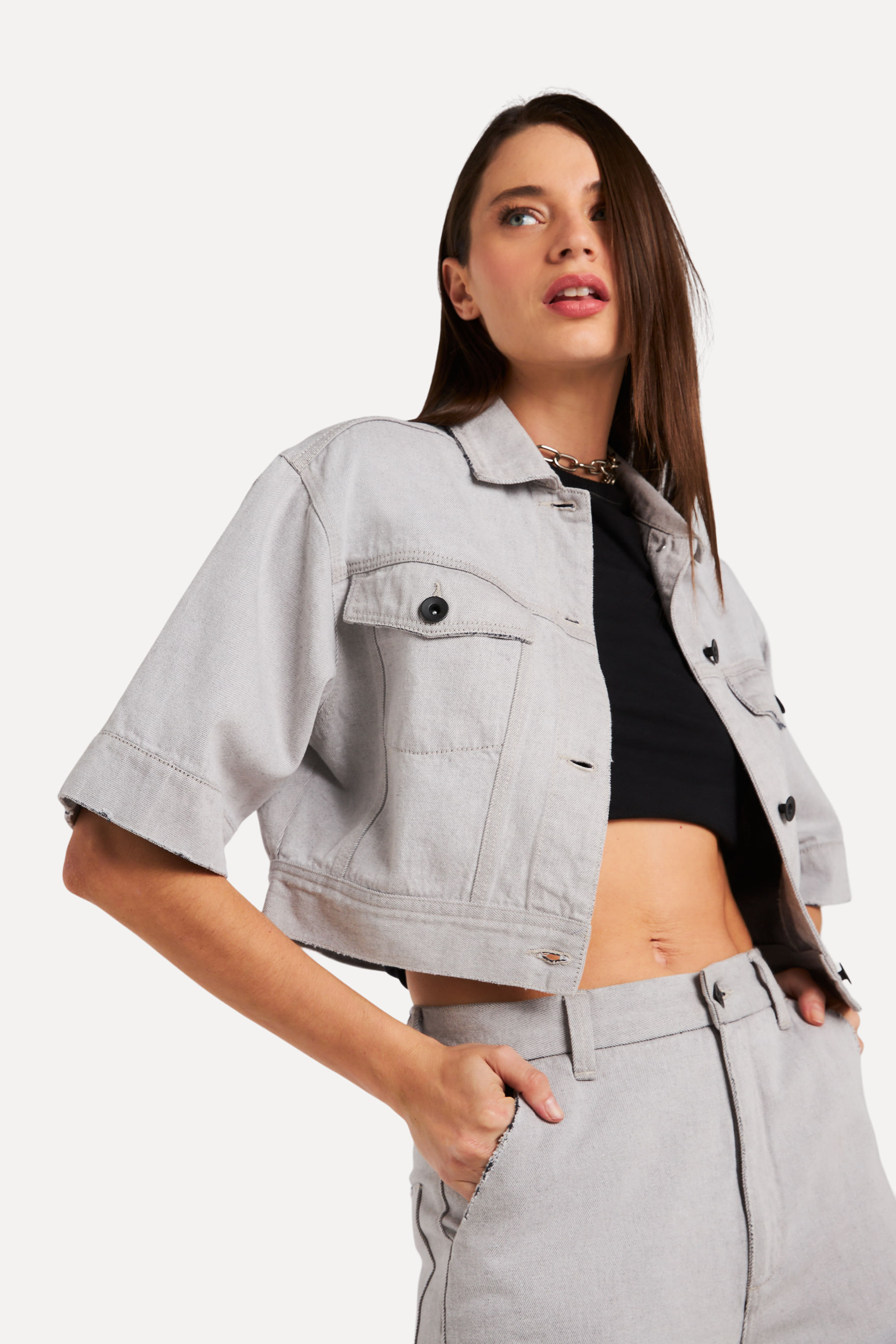 It’s workwear, baby! A Jaqueta Jeans Manga Curta tem a estética de roupa de trabalho, com modelagem ampla e curta, perfeita pra usar sobrepondo peças com tamanhos diferentes. Ela tem bolsos frontais e botões grandes, que complementam o visual bold da peça. Jaqueta Reversa produzida eticamente no Brasil. Comprando esta peça, você viabiliza cinco pratos de comida através do nosso programa 1P5P.