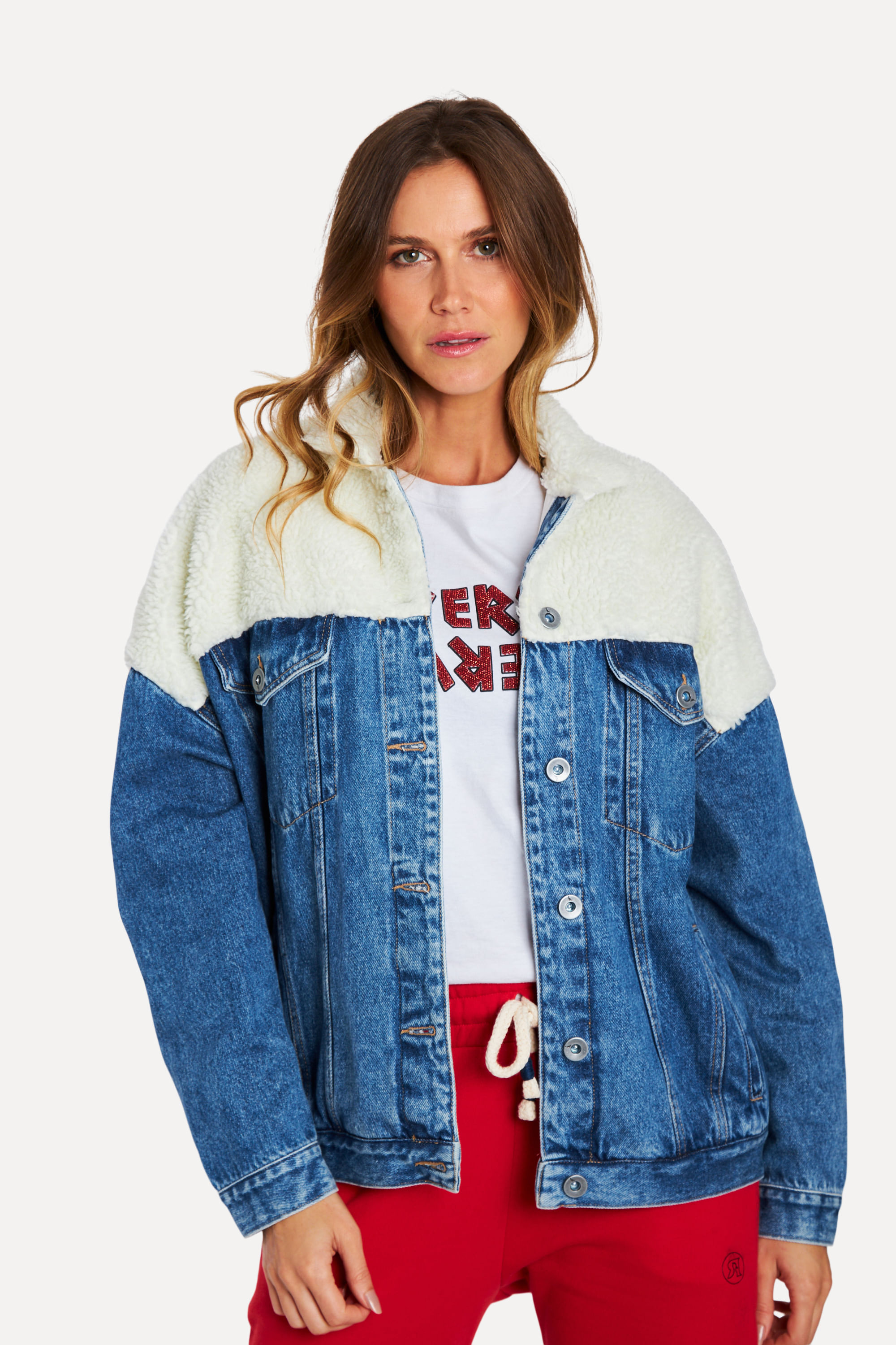Favoritos da estação! A jaqueta jeans índigo tem modelagem clássica, recortes com aplicação de Sherpa e lavagem média . Perfeita para compor looks urbanos e causais, ela vai bem sobreposta à camisetas e vestidos.