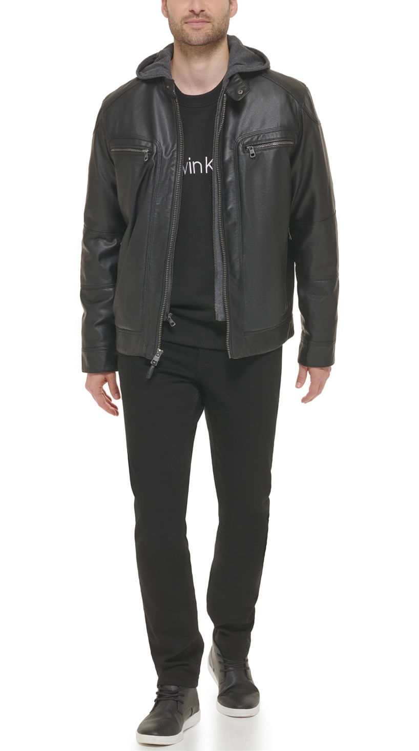 Jaqueta Masculina Em PU Com Capuz Calvin Klein Jeans