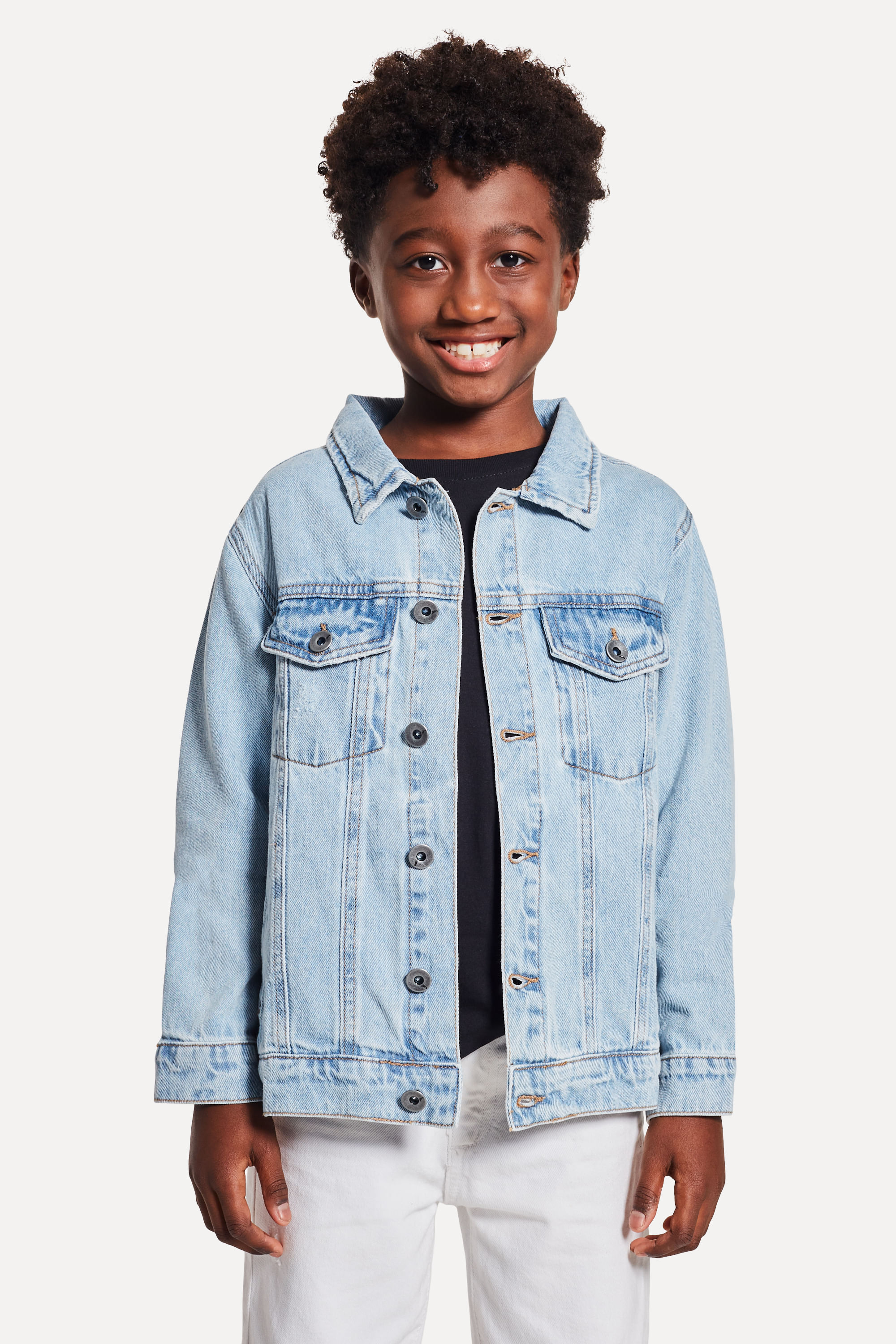 Jaqueta jeans da Coleção de Verão 25 da Reserva Mini. A peça é estonada e confeccionada em jeans 100% algodão. Possui bolsos com lapela e botão, pate com botões no centro frente e metais prata velho. Ela é assinada com silk grande Reserva Skate nas costas. Produzido eticamente no Brasil. Comprando esta peça, você complementa cinco pratos de comida através do nosso programa 1P=5P.