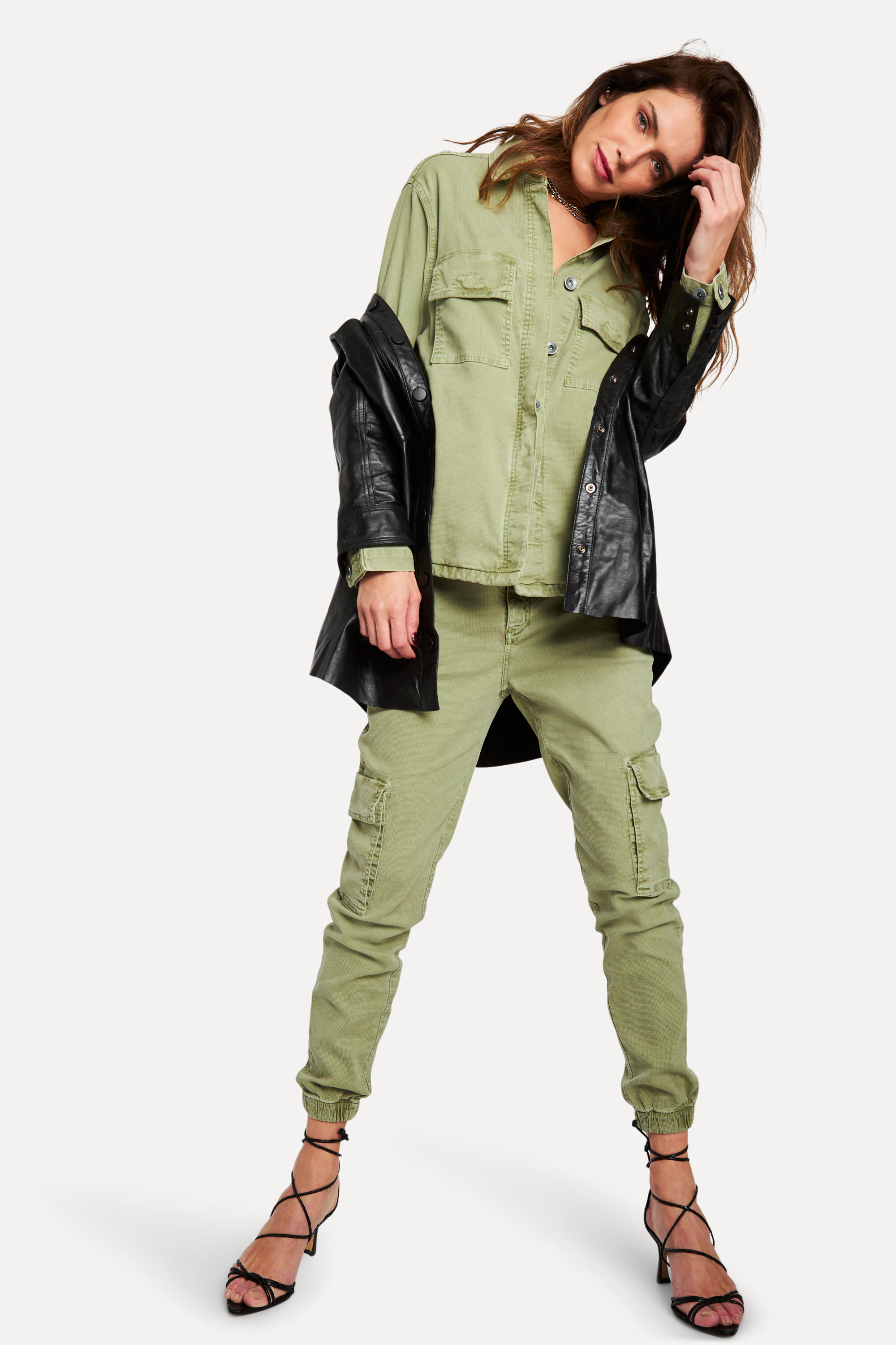 Traga uma pegada street para as suas produções. A jaqueta de sarja verde clara tem modelagem oversized e bolsos utilitários. Super confortável e durável, ela atravessa estações e é perfeita para criar sobreposições com vestidos, camisetas e tops.