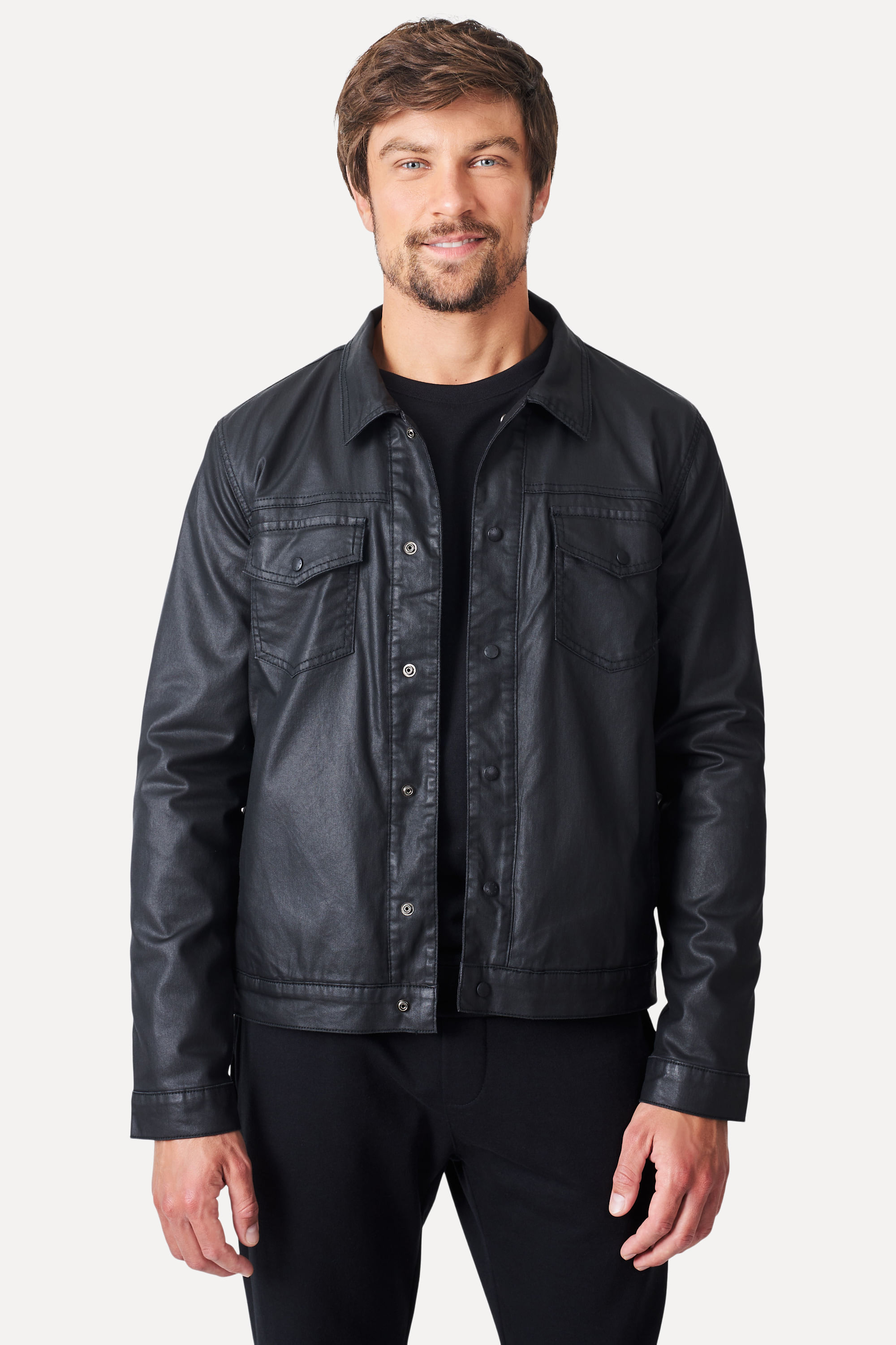 A Jaqueta Trucker Black Resinado é sua must-have neste inverno! Feita em tecido preto resinado de algodão, poliester e elastano, possui abertura frontal, punhos e lapelas com botão de pressão personalizado, bolsos embutidos nas laterais e bolsos superiores aplicados com lapelas. Perfeita pra qualquer ocasião, você pode usar e abusar da sua criatividade, combinando com calças jeans, tênis, camisetas, camisas, bonés e muito mais! O modelo tem 1,85 de altura, 103 de tórax e veste 40. Comprando esta peça, você viabiliza cinco pratos de comida através do nosso Programa 1P5P. Jaqueta produzida eticamente no Brasil.