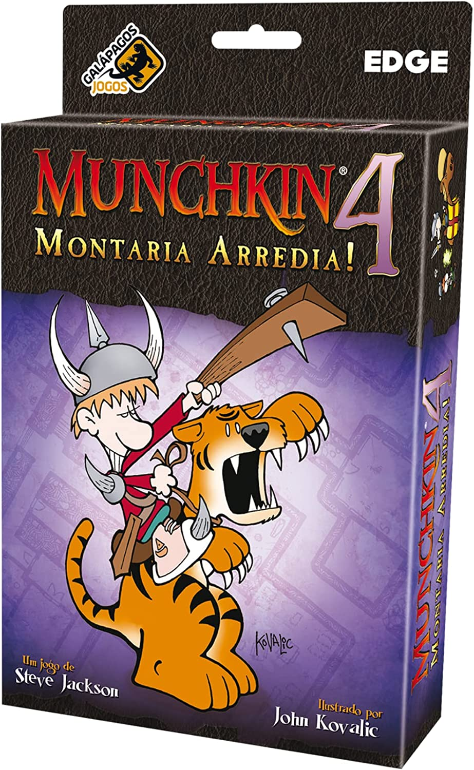 "Munchkin 4: The Need for Steed é uma expansão para o Munchkin original - 112 cartas para matar monstros, roubar tesouros, e trair os seus colegas jogadores. Este conjunto apresenta Montarias, as lendárias montarias... Oh, espere - isto é Munchkin! Então, essas Montarias não incluem apenas o dragão e o tigre, mas o gigante mutante Gerbil, o frango, e Big Joe, que pode ser uma montaria ou pode ser um mercenário. É difícil dizer.<br /> <br /> Mercenário? Adicione estes personagens valiosos para o seu séquito, use suas habilidades especiais, e sacrifique-os sem pensar para salvar sua própria pele! Ou, melhor ainda, mate alguém com este mercenário. Essa é a maneira de ser de um Munchkin!<br /> <br /> Cuide bem do seu ''Dragão de Montaria'', de seu ''Velociraptor'' ou até de sua ''Galinha de Montaria'', você nunca sabe qual será mais útil durante as batalhas."
