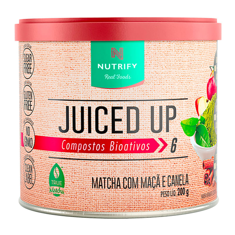 Informações técnicas sobre o produto:<br> O Juiced Up sabor Maçã e Canela, da Nutrify, 200g, é um pó para preparo de suco de baixo valor calórico sabor matcha com maçã e canela.<br> <br> Bebida naturalmente energética, composta por uma combinação de guaraná, matchá orgânico, cúrcuma, gengibre, canela em pó e pimenta vermelha. Possuí cafeína, que está presente na composição de modo natural, por ser derivada dos próprios ingredientes.<br> <br> Recomendações de consumo:<br> Dilua 1 scoop (5 g) em 200 ml de água, gelada ou quente.<br> <br> Consuma 1 vez ao dia, ou conforme orientação de médico ou nutricionista.<br> <br> Por que escolher esse produto?<br> 50mg de cafeína na porção<br> Sem glúten<br> Zero adição de açúcares<br> Adoçantes naturais<br> Livre de corantes artificiais<br> Baixo valor calórico<br> Livre de transgênicos<br> Sobre a marca<br> A Nutrify busca oferecer bem-estar através de produtos de qualidade, saudáveis, saborosos, responsáveis e com embasamento científico. Possui um foco específico em alimentos e suplementos para praticantes de atividade física, além de apoiar iniciativas relacionadas a responsabilidade social e sustentabilidade.