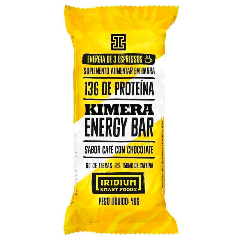 A Kimera energy bar com sabor de café com chocolate, da Iridium Labs, de 40g, foi a primeira barra termogênica e proteica criada no Brasil. Feita com colágeno, whey protein e cafeína, fornece em uma porção 150mg de cafeína e 13g de proteína.