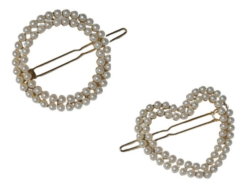 Kit 2x Grampo de Metal com aplicação de Pérola, acessório super em alta para você completar suas produções!<br /> <br /> <br /> Contém:<br /> 1 Grampo Pérola Círculo.<br /> 1 Grampo Pérola Coração.<br /> <br /> <br /> Material super resistente.