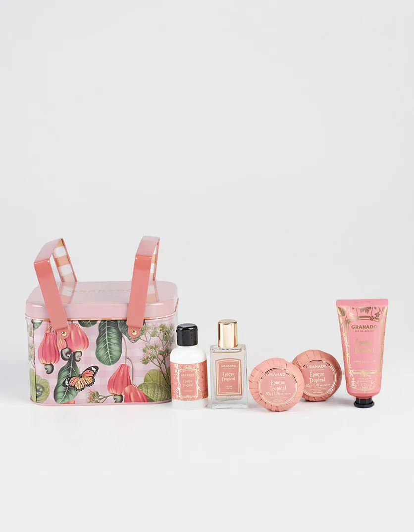 Inspirada pelo charme dos piqueniques ao ar livre e pelo universo da perfumaria Vintage, apresentamos a coleção Picnic Gourmand - feita para despertar os sentidos, celebrar o prazer dos encontros e a beleza das tradições com fragrâncias inesquecíveis.O Kit Cesta Picnic Époque Tropical vem em uma lata com formato inspirado nas cestas de piquenique e contém os itens essenciais da perfumaria. É um verdadeiro convite a experimentação da fragrância com um perfume, um hidratante, dois sabonetes em barra e um creme mãos. O perfume Époque Tropical é a união singular da clássica perfumaria francesa com a irreverência brasileira. Seu perfume marcante explora o lado envolvente das notas amadeiradas de sândalo e guaiaco e equilibra essa intensidade com o cítrico intenso da mandarina e do caju. Os sabonetes em barra cremosos da Granado têm ingredientes de origem natural e são formulados com base vegetal, manteiga de murumuru e óleo de coco, que auxiliam a hidratação, nutrição e proteção da pele.O hidratante corporal é formulado com glicerina vegetal, óleos de amêndoa doce e de girassol e manteiga de karité, que hidratam e deixam a pele macia e sedosa. O creme para mãos da Granado é formulado com óleo de amêndoa doce, óleo de sementes de uva e óleo de açaí, que hidratam, nutrem e deixam as mãos macias e sedosas. A embalagem traz um fundo xadrez clássico que remete às icônicas toalhas de piquenique, conferindo um toque alegre e descontraído.Livres de parabenos e ingredientes de origem animal. Produtos não testados em animais.Conteúdo: 2x sabonetes barra 50g; 1x hidratante 60ml; 1 x creme mãos 50g; 1x perfume 25ml + 1x lata cesta de piquenique