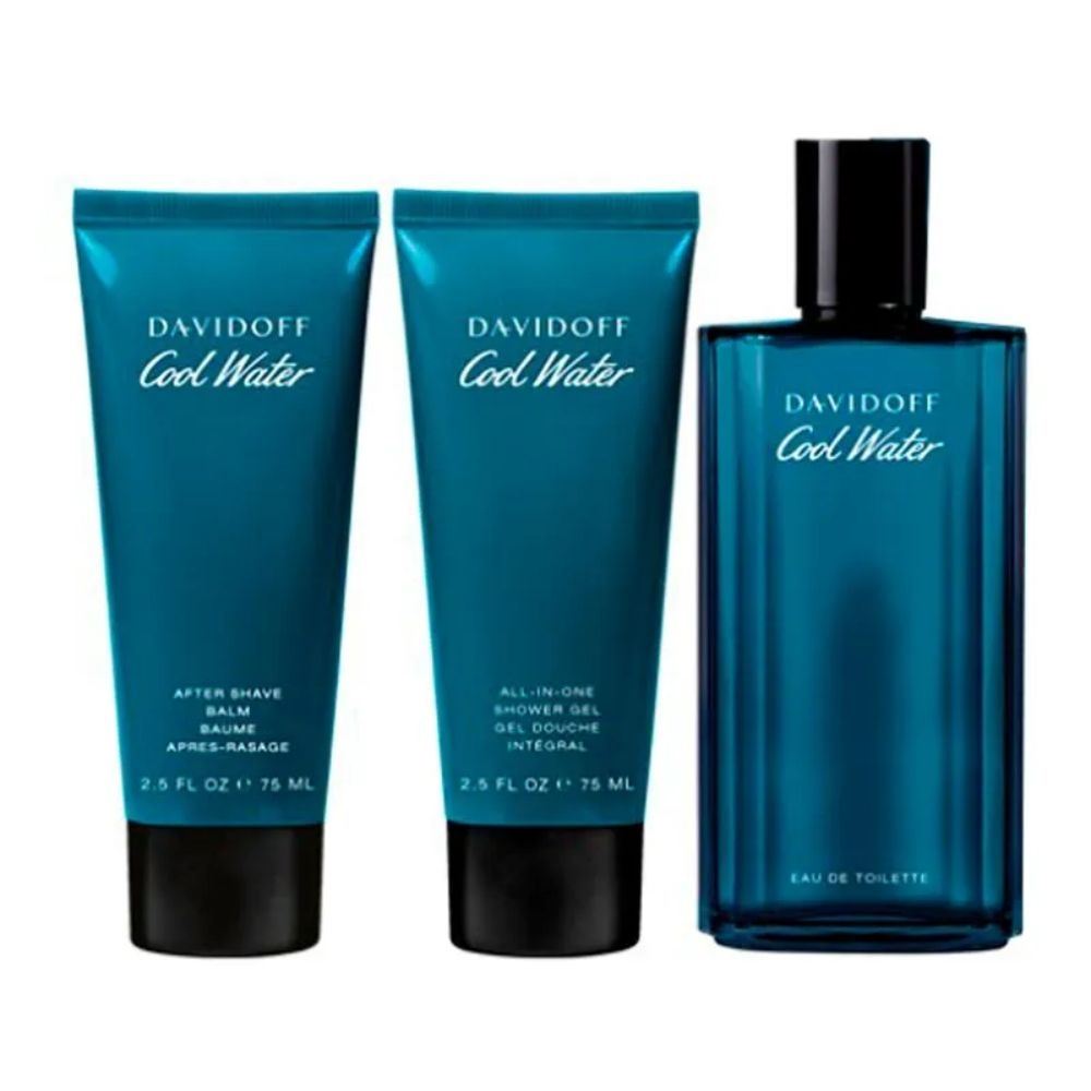 Conjunto masculino com perfume Cool Water aromático fresco, shower gel e sabonete líquido de Davidoff. Uma fragrância lendária inspirado nos oceanos.