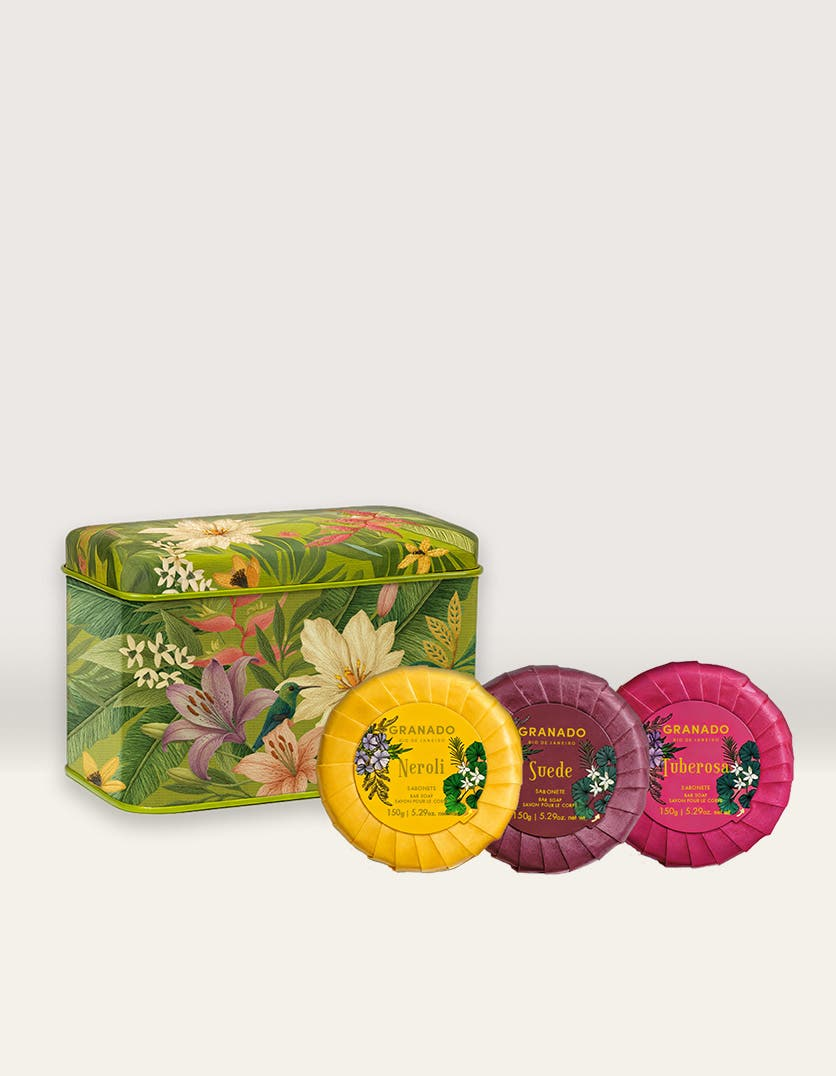 Como pedir Kit Lata Granado Trio Sabonetes e Lenço Jardim Tropical no Rappi?