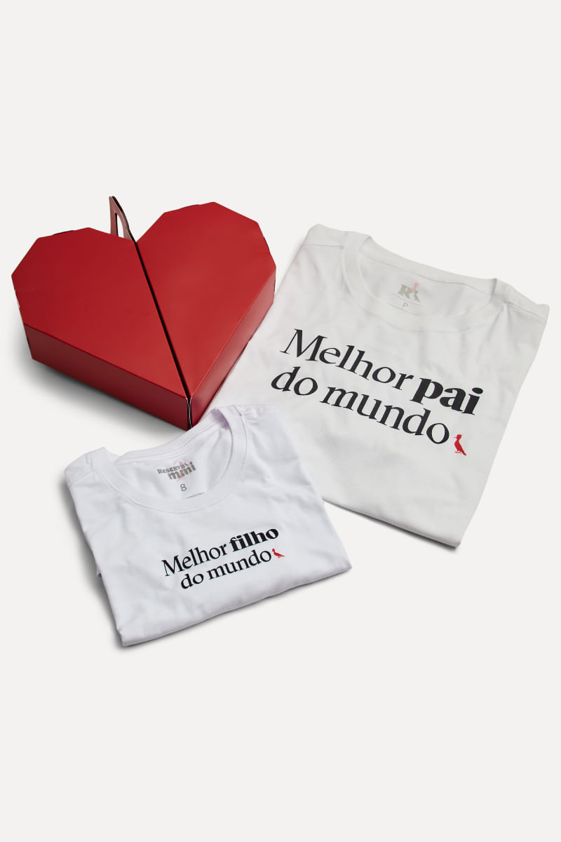 O Kit Melhor Pai E Melhor Filho é perfeito pra presentear pais e Minis! Nele, vem 2 camisetas brancas, de manga curta e gola redonda, com os dizeres “Melhor Pai do Mundo” e “Melhor Filho do Mundo”. Esse kit vem em uma embalagem em formato de coração, perfeito para tornar esse presente ainda mais especial! Comprando esta peça, você viabiliza cinco pratos de comida através do nosso Programa 1P5P. Kit produzido eticamente no Brasil.