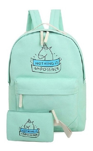 Kit com 2 peças:<br /> <br /> - Mochila em lona, cor rosa. Possui bolso externo, bolso interno e lateral. Tamanho: 42cm x 31cm x 12cm<br /> <br /> - Necessaire/estojo em lona. Tamanho: 11cm x 19cm x 3cm