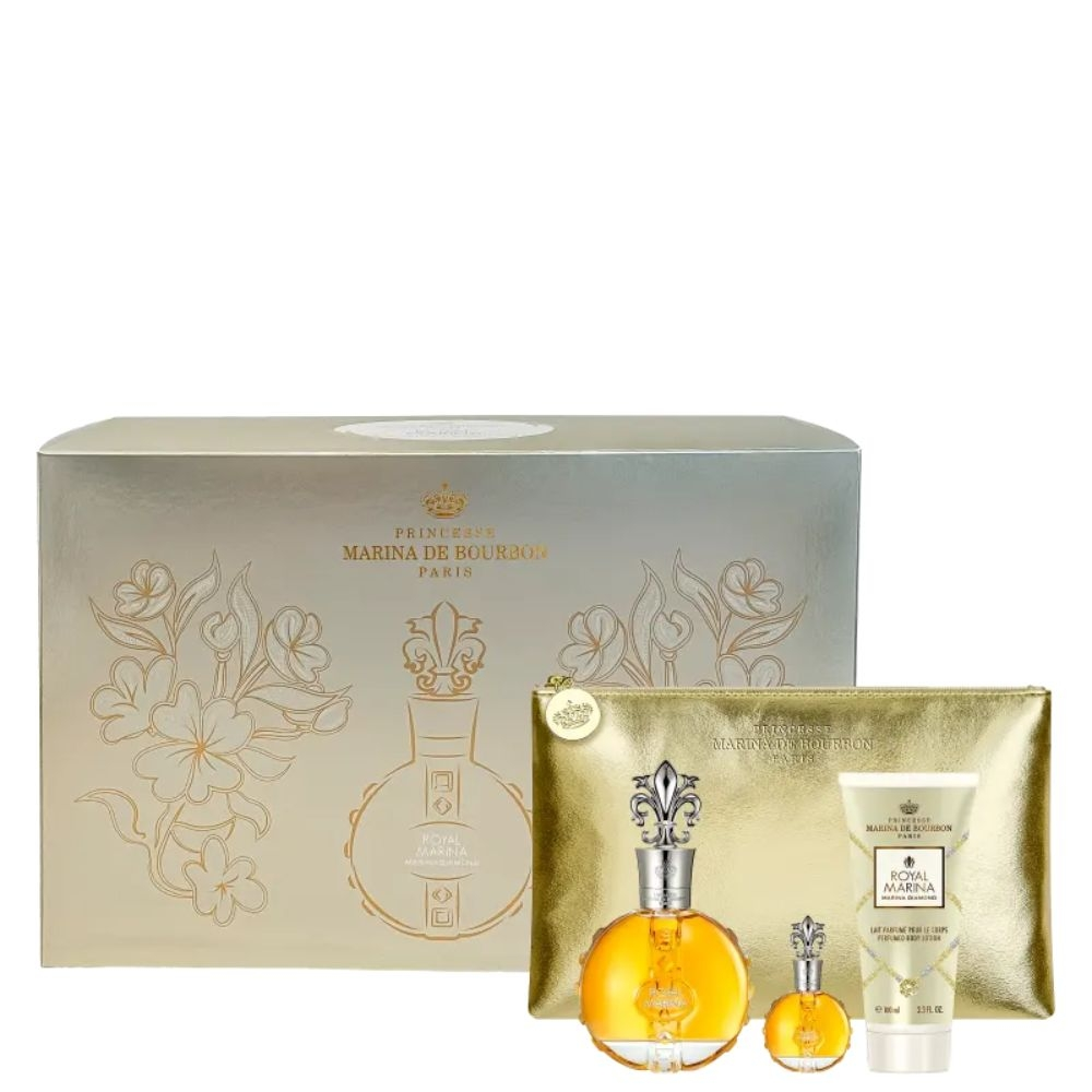 O Perfume Royal Diamond, de Marina de Bourbon, representa a culminação da sedução e confiança, verdadeira joia destinada a adornar a pele da mulher. Com uma coreografia olfativa envolvente, essa fragrância celebra a exuberância festiva das frutas vermelhas, harmonizando-se perfeitamente com as delicadas pétalas de jasmim e íris. No âmago deste perfume, encontra-se a preciosidade floral, envolvida pela sensualidade exótica da madeira de copaíba. Um toque final de baunilha e musk destaca o poder deste elixir, transformando cada movimento em uma conquista irresistível.