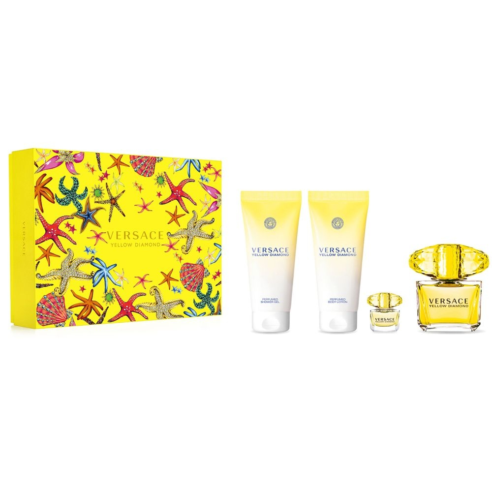 Kit Yellow Diamond !!<br /> <br /> -1 perfume Yellow Diamond 90ml Feminino Eua de Toilette 90ml<br /> -1 Hidratante 100ml<br /> -1 Gel de Banho 100ml<br /> -1 Miniatura 5ml<br /> <br /> Família Olfativa : Floral<br /> Principais Características : citrinos, floral, floral amarelo, atalcado, doce, fresco, floral branco, aromático, aquático, frutado.