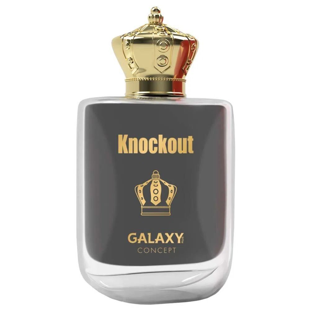 O design do frasco de Knockout remete à realeza dos campeões e lutadores incansáveis, com a presença da coroa e linhas suaves e discretas.<br /> A grandiosa marca Galaxy nasceu na cidade mais exuberante do mundo: Dubai; e foi inspirada na paixão por aromas e sabores do Oriente, aterrissa no Brasil com lançamentos incríveis. A marca faz parte do grupo ABC Fragrances, que surgiu em 1964 com a busca criatividade e inovação em diversos segmentos. A marca está presente em mais de 30 países, com força e solidez, e conta com mais de 700 fragrâncias em seu portfólio.