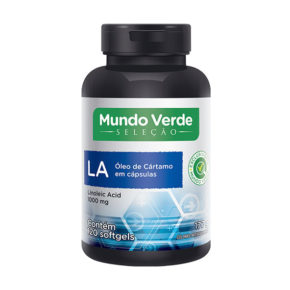 Informações técnicas do produto:<br> <br> O LA da Mundo Verde Seleção, 120 cápsulas, é um suplemento alimentar composto por óleo de cártamo, rico em ácidos graxos essenciais. Está em formato de cápsulas o que facilita a ingestão e o transporte.<br> <br> O ideal é que o uso de óleo de cártamo esteja associado à alimentação balanceada e à prática de atividade física.<br> <br> Recomendação de consumo.<br> <br> Recomenda-se a ingestão de quatro cápsulas por dia, sendo dois pela manhã e dois antes do almoço.<br> <br> Por que escolher esse produto?<br> <br> cápsulas práticas<br> <br> Sem glúten<br> <br> Sem lactose<br> <br> Sem açúcar<br> <br> Livre de conservantes<br> <br> <br> <br> Sobre a marca:<br> <br> A Mundo Verde Seleção é uma linha de produtos para quem quer ter uma vida mais saudável e gostosa. A marca quer ajudar a colocar essas escolhas em prática. A paixão e conhecimento pelos alimentos, nutrientes, aromas e sabores permitem a seleção das melhores opções saudáveis para qualquer ocasião. Conheça a linha completa Mundo Verde Seleção, com inúmeros produtos saudáveis e gostosos para facilitar seu dia a dia.<br> <br>