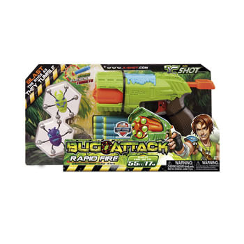 A diversão está garantida com o conjunto Bug Attack Rapid Fire. Acompanha 1 lançador Rapid Fire, 2 insetos pegajosos e 8 dardos! Você pode jogar os insetos na parede e tentar acertá-los! Os dardos alcançam até 24 metros de distância com alta precisão! Com o Bug Attack Rapid Fire a brincadeira vai ficar muito mais ágil! O lançador é compatível com os principais dardos do mercado.
