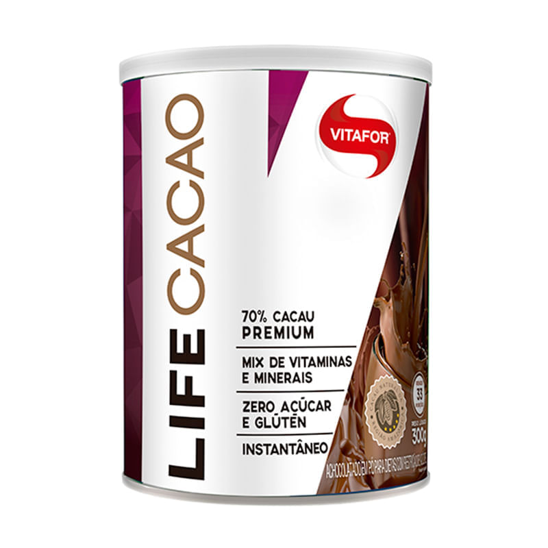 Informações técnicas sobre o produto:<br>_x000D_ O Life Cacao, da Vitafor, 300g, é achocolatado em pó 70% cacau, elaborado com um complexo de 15 vitaminas e 12 minerais com elevado padrão de qualidade. Sem adição de açúcar, adoçado com estévia, criado para substituir os achocolatados tradicionais ricos em açúcar refinado.<br>_x000D_ <br>_x000D_ Recomendações de consumo:<br>_x000D_ Pode ser usado para substituir o achocolatado tradicional, em receitas ou no leite.<br>_x000D_ <br>_x000D_ Dissolva 9g (uma colher de sopa) em aproximadamente 200mL de leite, água, Whey ou bebida de sua preferência. Para melhor homogeneização utilizar coqueteleira ou mixer.<br>_x000D_ <br>_x000D_ Por que escolher esse produto?<br>_x000D_ Acrescido de vitaminas e minerais<br>_x000D_ Sem adição de açúcar<br>_x000D_ Sem alergênicos<br>_x000D_ Não contém glúten<br>_x000D_ Isento de conservantes, aromas artificiais, maltodextrina e frutose<br>_x000D_ Sem lactose<br>_x000D_ Sobre a marca:<br>_x000D_ A Vitafor é uma marca brasileira de suplementos alimentares com padrão de alta qualidade e eficácia, que valoriza o desenvolvimento sustentável, incorporando esse conceito a suas operações diárias. Os resíduos da fabricação dos produtos são mínimos, as embalagens utilizadas em todo o processo são recicladas e seus produtos são atóxicos, beneficiando a sua saúde e cuidando da natureza e do meio ambiente em parceria com a comunidade.<br>_x000D_ A marca possui certificação internacional de qualidade e de origem dos óleos de peixe utilizados em seus produtos, e possui rigorosa análise e comprovação de testes de todos os lotes de seus produtos.
