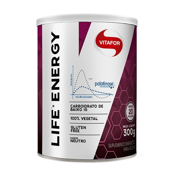 <p>O <strong>Life's Energy Palatinose Vitafor 300g</strong>, é um suplemento energético, 100% vegetal, de baixo índice glicêmico e zero glúten. </p> Sugestão de Consumo: <p>Dissolver 15g (1 colher medida) em aproximadamente 200ml de água. Misture até a total homogeneização e beba preferencialmente antes das atividades físicas, ou conforme a orientação do médico ou nutricionista. Beba imediatamente após o preparo.</p> Motivos para escolher o produto: <ul> <li> <p>Zero glúten</p> </li> <li> <p>Baixo índice glicêmico</p> </li> <li> <p>100% vegetal</p> </li> <li> <p>Prático</p> </li> <li> <p>Sabor neutro</p> </li> </ul> Sobre a marca: <p>A <strong>Vitafor</strong> é uma marca nacional que está no mercado há mais de 10 anos. Tem como objetivo fabricar e desenvolver suplementos alimentares com padrão de alta qualidade e eficácia. Através de seus produtos, a <strong>Vitafor </strong>oferece confiança e eficácia nos produtos para complementar as necessidades nutricionais daqueles que se preocupam com a saúde, desempenho e bem-estar.</p>