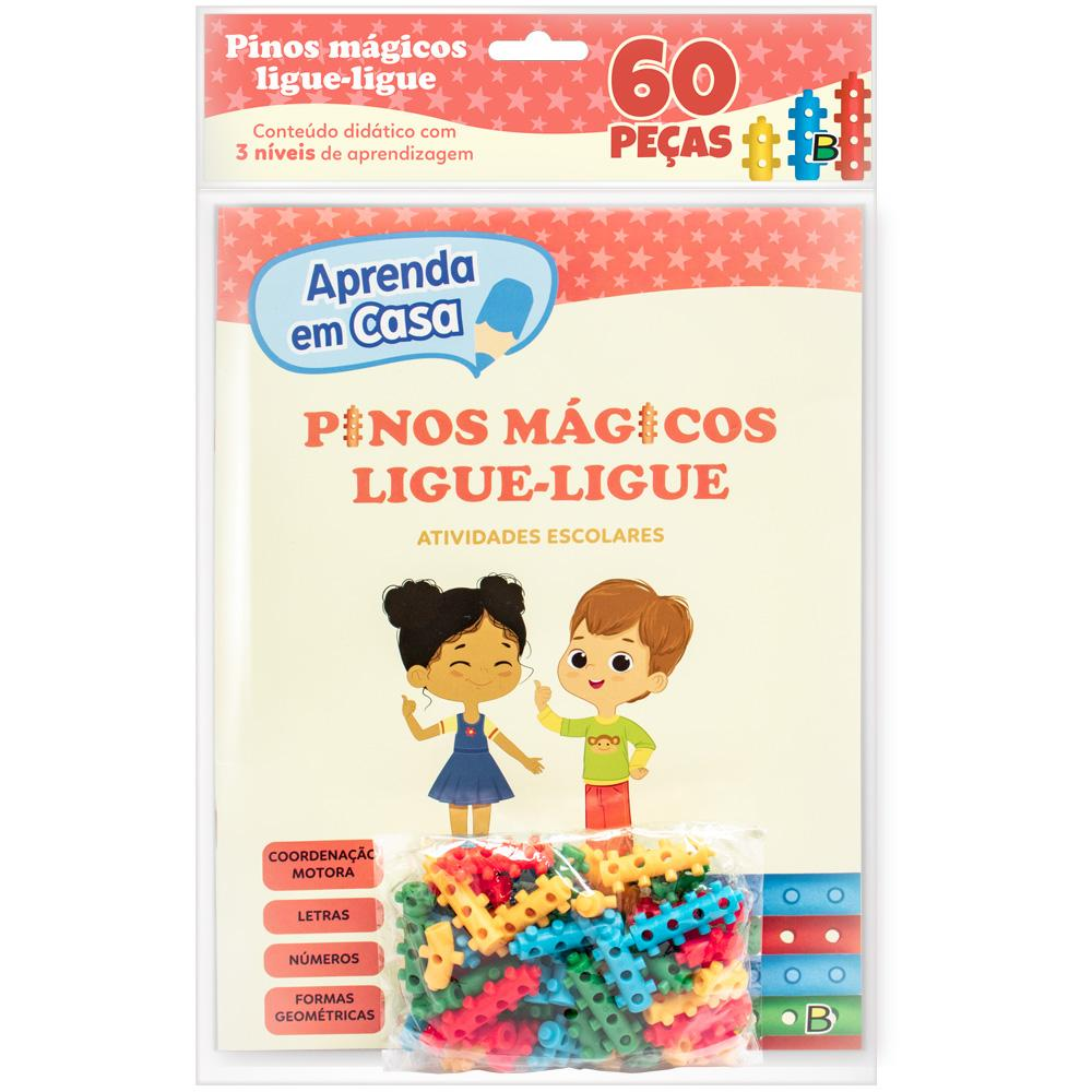 Os pinos mágicos auxiliam no aprendizado de maneira lúdica, desenvolvendo: . a visão e a orientação espacial, a coordenação motora fina e bimanual (movimentos de pinça coordenados), o controle de força muscular, a concentração, a atenção, o raciocínio matemático básico . noção de tamanho e quantidade, discriminação, agrupamento e o sequenciamento de cores e formas geométricas, reconhecimento de semelhanças e diferenças . reconhecimento e sequenciamento das letras do alfabeto e dos números. Os pinos mágicos também estimulam a criatividade, por meio das possibilidades de criação livre, e aprimoram as capacidades de âmbito cognitivo, emocional e social ao possibilitar a interação de forma colaborativa. Possibilidades de exploração: . empilhar formando uma torre alta . encaixar as peças copiando modelos e repetindo sequências determinadas . fazer um ditado de cores (encaixar as peças segundo as cores que forem nomeadas). . construir livremente. Acompanhe a criança nesta jornada!