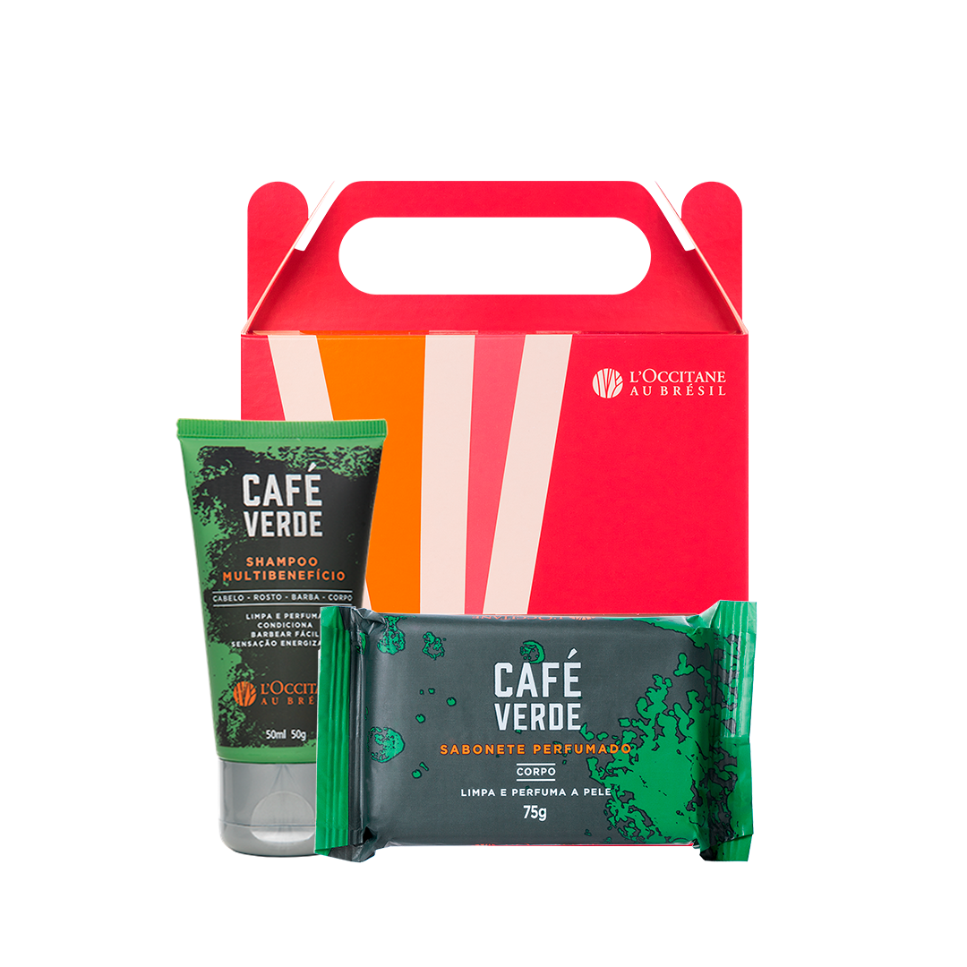 Kit Presente L’Occitane au Brésil Café Verde – Shampoo Multibenefício + Sabonete<br /> Praticidade, frescor e cuidado na medida certa. Inspirada na energia do Café Verde, essa linha foi desenvolvida especialmente para o homem brasileiro, combinando performance e fragrância marcante em um presente completo.<br /> O shampoo multibenefício traz uma fórmula versátil, ideal para corpo, rosto e cabelos, promovendo limpeza eficaz com praticidade. Já o sabonete de espuma cremosa limpa suavemente, deixando a pele com um toque perfumado e fresco, com notas aromáticas amadeiradas.<br /> Este kit contém:<br /> – Shampoo Multibenefício Café Verde 50ml<br /> – Sabonete Perfumado Café Verde<br /> – Caixa de presente tamanho PP<br /> Presenteie com sofisticação ou leve mais cuidado para a sua rotina. Ideal para todos os momentos.