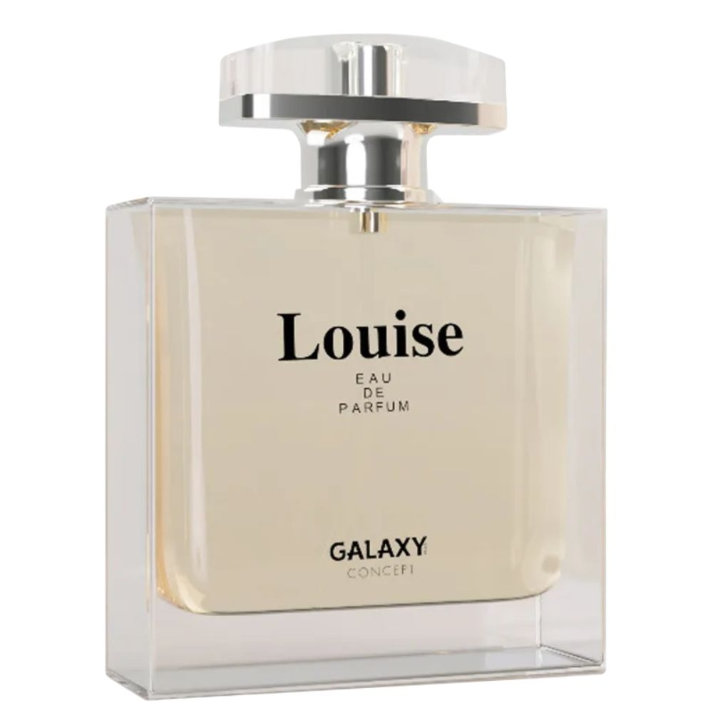 O Perfume Louise, de Galaxy Plus Concept, é inspirado na mulher radiante, confiante e intensa. A fragrância traz uma explosão vibrante de notas de topo como frésia, peônia e lichia. No coração, acordes sedutores de lírio do vale, magnólia e rosa. Envolvendo essa poderosa composição, notas de fundo de âmbar e cedro da Virgínia.