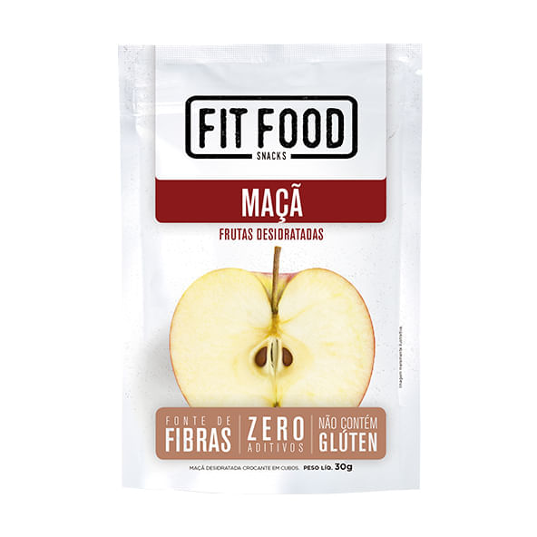 Maçã Desidratada Crocante em Cubos Sem Adição de Açúcar e Sal Fit Food Pacote 30 g.