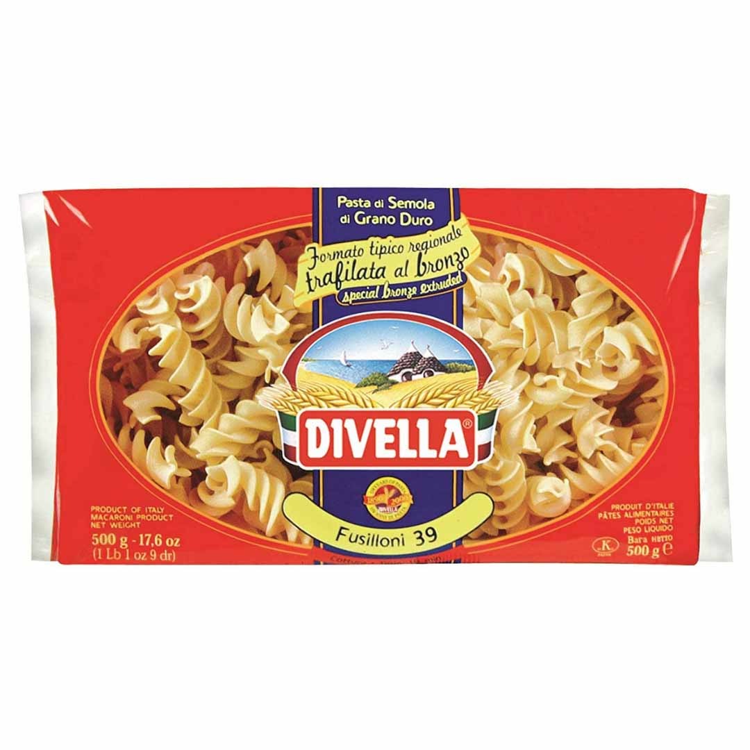 VOCÊ ESTÁ COMPRANDO: MACARRÃO DIVELLA 039 FUSILLONI 500G<br /> PAIS DE ORIGEM: ITÁLIA<br /> <br /> SOBRE O PRODUTO:<br /> <br /> O fusilloni é uma variação do clássico fusilli com dimensão maior, que absorve mais os molhos. É ideal para ser servido com molhos mais encorpados ou à base de queijo. As massas Divella são feitas exclusivamente de grano duro 100% italiano, que trazem derivados do trigo com mais proteínas.<br /> <br /> A Divella desde 1890 é produtora de massa exclusivamente feita de Grano Duro e fabricada 100% na Itália. Sua inspiração continua a mesma desde seu início: passar a tradição da Puglia e da dieta mediterrânea por meio da autêntica massa italiana. Seus pilares podem ser resumidos em alguns pontos: Excelência na qualidade, atenção à saúde e segurança do consumidor, respeito ao meio ambiente e responsabilidade social.
