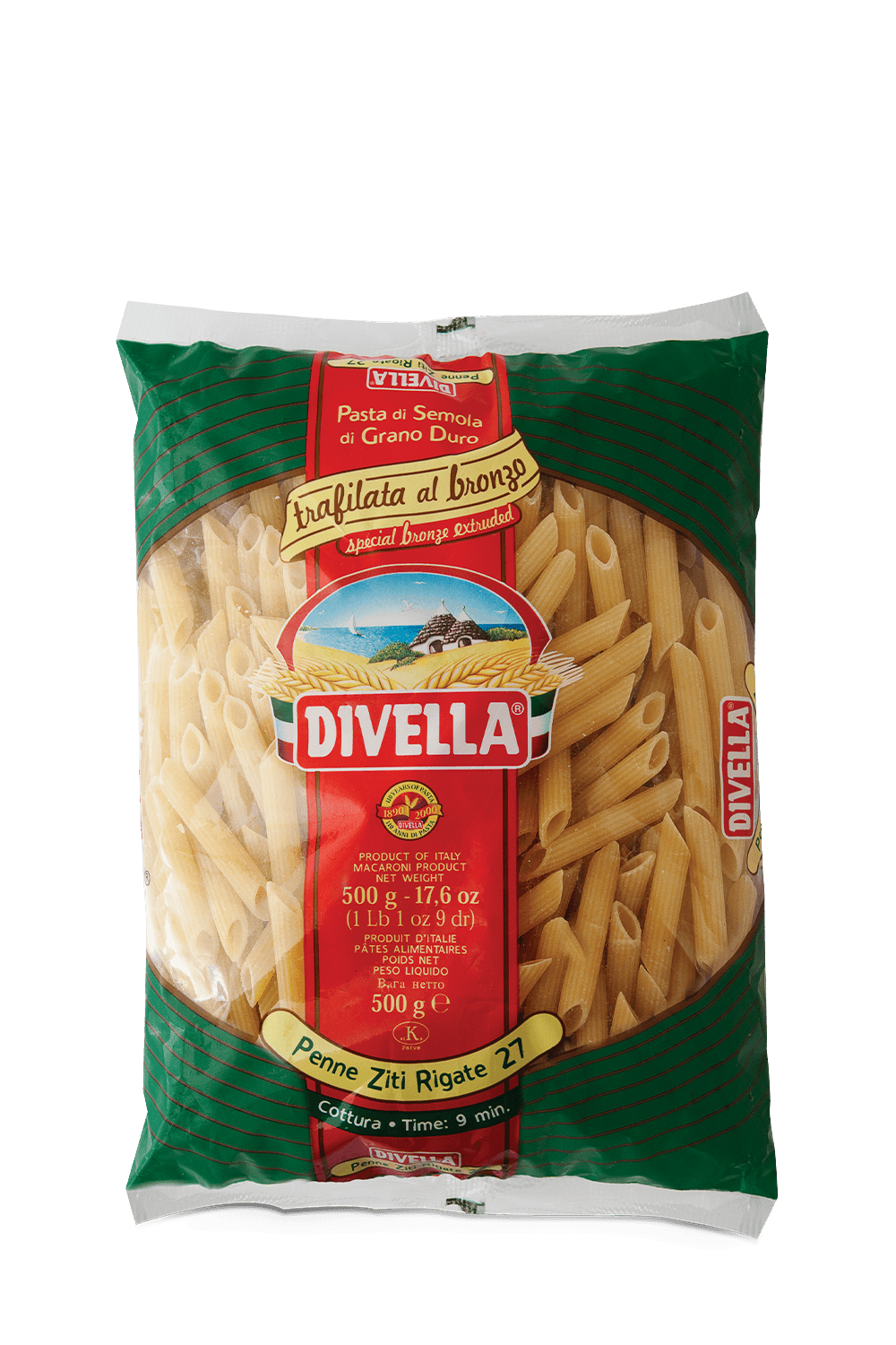 VOCÊ ESTÁ COMPRANDO: MACARRÃO DIVELLA 27 PENNE ZITI TRAFILATA AL BRONZO 500G<br /> PAIS DE ORIGEM: ITÁLIA<br /> <br /> SOBRE O PRODUTO:<br /> <br /> O penne é uma das massas mais consumidas no mundo, principalmente na tradicional receita Penne all’Arrabbiata. Produzido em moldes de bronze - "trafilata al bronzo" -, que deixam a massa mais áspera e permitem mais absorção dos molhos. As massas Divella são feitas exclusivamente de grano duro 100% italiano, que trazem derivados do trigo com mais proteínas.<br /> <br /> A Divella desde 1890 é produtora de massa exclusivamente feita de Grano Duro e fabricada 100% na Itália. Sua inspiração continua a mesma desde seu início: passar a tradição da Puglia e da dieta mediterrânea por meio da autêntica massa italiana. Seus pilares podem ser resumidos em alguns pontos: Excelência na qualidade, atenção à saúde e segurança do consumidor, respeito ao meio ambiente e responsabilidade social.