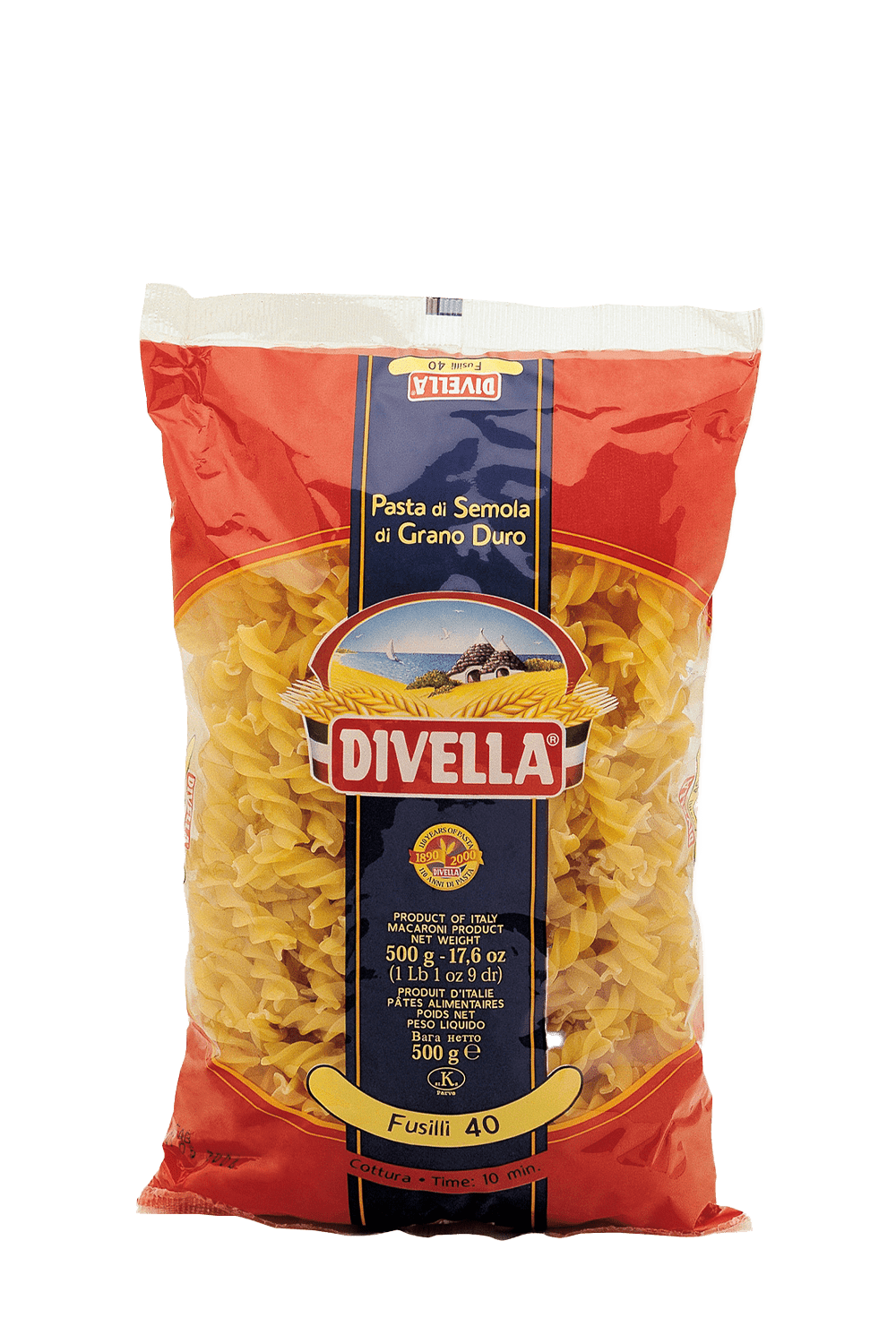 VOCÊ ESTÁ COMPRANDO: MACARRÃO DIVELLA 40 FUSILLI 500G<br /> PAIS DE ORIGEM: ITÁLIA<br /> <br /> SOBRE O PRODUTO:<br /> <br /> O famoso fusilli, massa com formato semelhante a um parafuso, é ideal para ser servido com molhos mais encorpados ou a base de queijo. Também pode ser preparado em pratos frios e saladas. As massas Divella são feitas exclusivamente de grano duro 100% italiano, que trazem derivados do trigo com mais proteínas.<br /> <br /> A Divella desde 1890 é produtora de massa exclusivamente feita de Grano Duro e fabricada 100% na Itália. Sua inspiração continua a mesma desde seu início: passar a tradição da Puglia e da dieta mediterrânea por meio da autêntica massa italiana. Seus pilares podem ser resumidos em alguns pontos: Excelência na qualidade, atenção à saúde e segurança do consumidor, respeito ao meio ambiente e responsabilidade social.