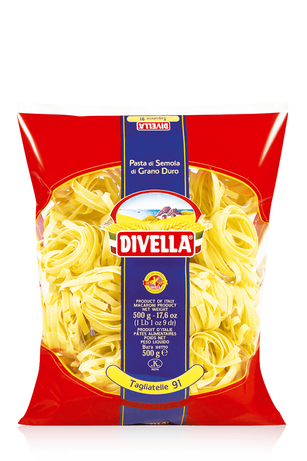 VOCÊ ESTÁ COMPRANDO: MACARRÃO DIVELLA 91 TAGLIATELLE 500G<br /> PAIS DE ORIGEM: ITÁLIA<br /> <br /> SOBRE O PRODUTO:<br /> <br /> O tagliatelle apresenta um corte longo e reto, semelhante ao fettuccine, porém com maior comprimento. Seu prato mais tradicional é o Tagliatelle à Bolonhesa, mas também pode ser combinado muito bem com ragu de carnes. "Nidi" em português significa "ninho", nome dado a esta linha devido ao seu formato. As massas Divella são feitas exclusivamente de grano duro 100% italiano, que trazem derivados do trigo com mais proteínas.<br /> <br /> A Divella desde 1890 é produtora de massa exclusivamente feita de Grano Duro e fabricada 100% na Itália. Sua inspiração continua a mesma desde seu início: passar a tradição da Puglia e da dieta mediterrânea por meio da autêntica massa italiana. Seus pilares podem ser resumidos em alguns pontos: Excelência na qualidade, atenção à saúde e segurança do consumidor, respeito ao meio ambiente e responsabilidade social.