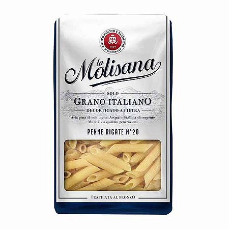 VOCÊ ESTÁ COMPRANDO: MACARRÃO LA MOLISANA 20 PENNE RIGATE 500G<br /> PAIS DE ORIGEM: ITÁLIA<br /> <br /> SOBRE O PRODUTO:<br /> <br /> DESCRIÇÃO<br /> <br /> Massa penne rigate. Com excelente espessura e textura, graças à superfície listrada e áspera, são perfeitas para receitas à base de molhos, desde um molho de tomate básico até um molho italiano rústico e encorpado. Também combina com preparos ao forno, recheadas e opções leves refrescantes, combinada com ervas e vegetais. <br /> <br /> • tempo de cozimento: 11 minutos<br /> <br /> Contém Glúten <br /> <br /> INGREDIENTES sêmola de trigo. <br /> <br /> <br /> ALÉRGICOS<br /> <br /> • Pode conter soja<br /> <br /> INFORMAÇÕES DIETÉTICAS<br /> <br /> VEGANO • VEGETARIANO • SEM LACTOSE <br /> <br /> FORMATO: pacote<br /> <br /> VOLUME 500g