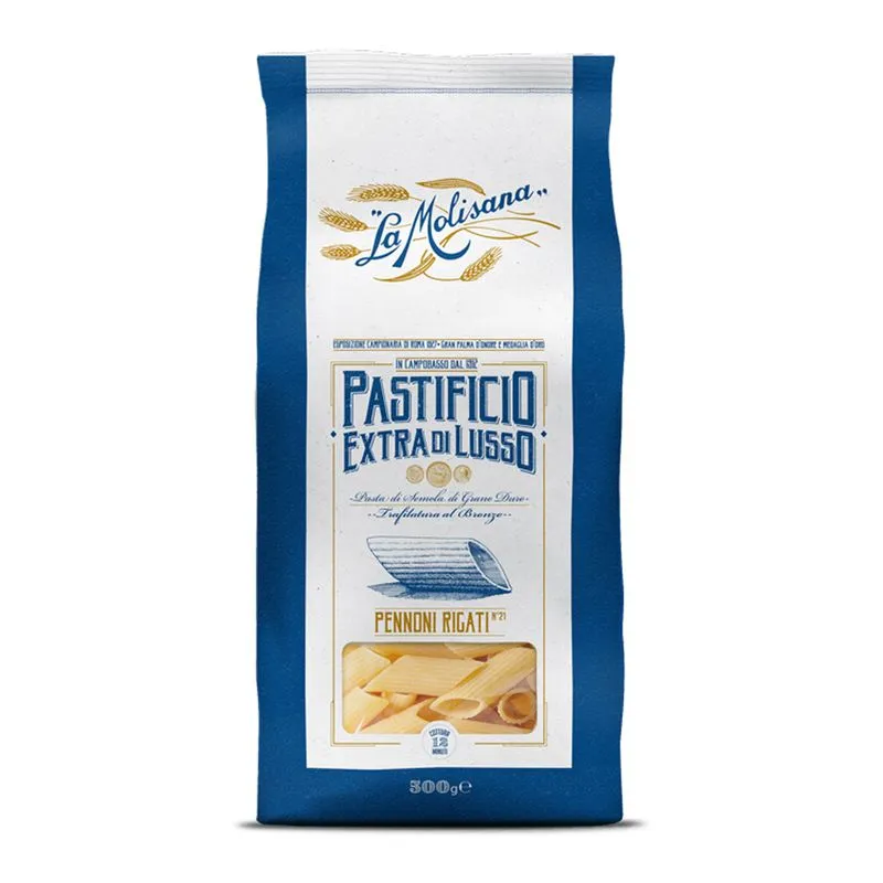 VOCÊ ESTÁ COMPRANDO: MASSA LA MOLISANA 21 PENNONI RIGATE 500G<br /> PAIS DE ORIGEM: ITÁLIA<br /> <br /> SOBRE O PRODUTO:<br /> <br /> A fábrica de massas La Molisana é uma das mais altas da Itália, com 730 metros de altura no coração de Molise. Um paraíso natural com uma longa tradição de cultivo de grãos, rico em água de nascente e ar puro, que cria as condições ideais para a produção de massas. Já no início do século passado, as primeiras oficinas de moagem em pequena escala - os chamados “maccaronari” - começaram a surgir nessa área.<br /> <br /> Uma tradição de longa data de qualidade, que La Molisana é embaixadora de todo o mundo. O que está por trás de suas massas é a história de uma família que seleciona e moe cuidadosamente apenas o melhor trigo duro há quatro gerações e uma empresa que, desde 2011, superou todas as projeções de crescimento, explodindo no mercado com uma massa Made in Molise , com características únicas que não podem ser copiadas. São o quinto maior fabricante de massas alimentícias da Itália e exportam para mais de 80 países ao redor do mundo. Sólidas habilidades transmitidas através das gerações, um espírito indomável e uma governança virtuosa são o que os agrega valor.