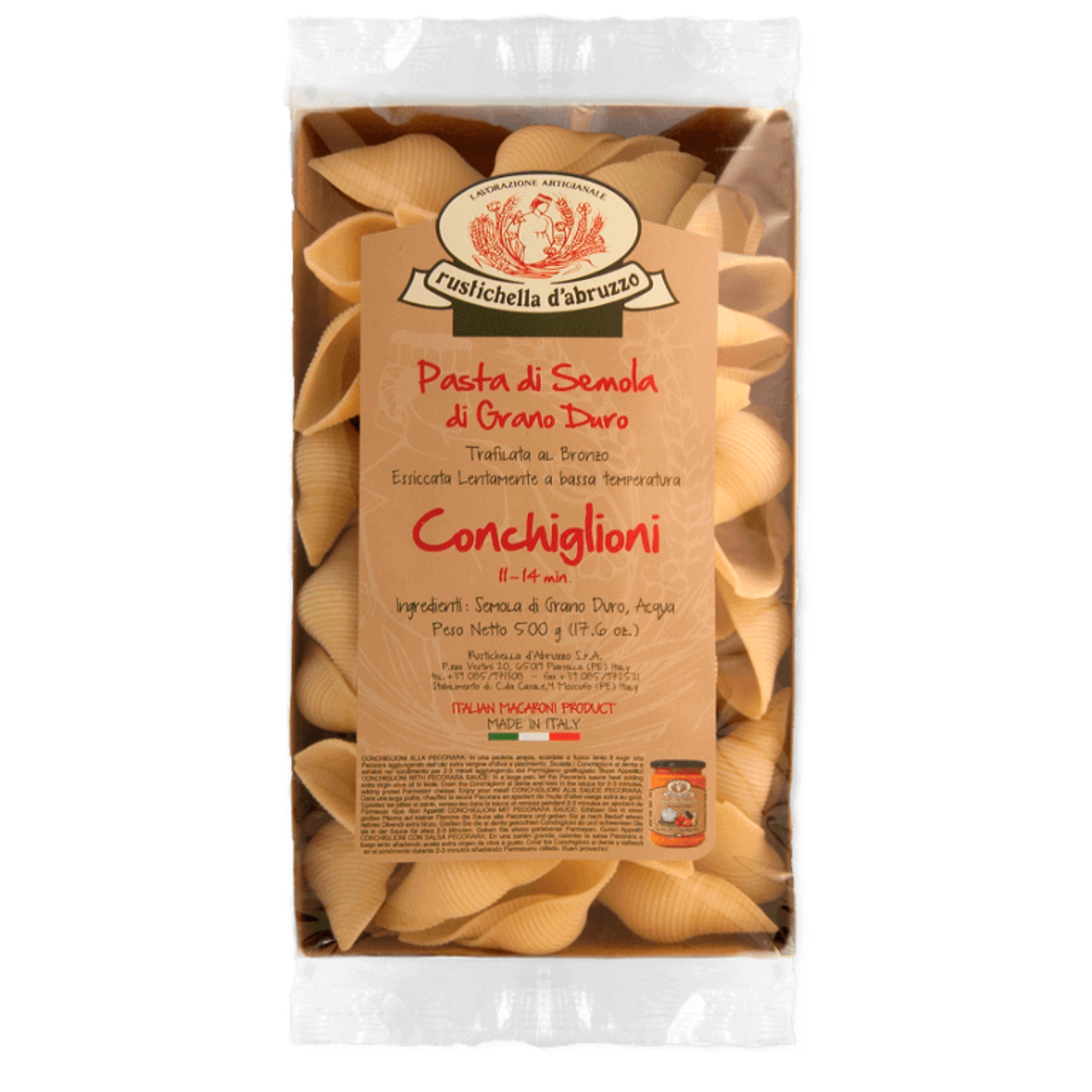 VOCÊ ESTÁ COMPRANDO: MACARRÃO RUSTICHELLA D'ABRUZZO CONCHIGLIONI 500GÃO RUSTICHELLA D'ABRUZZO LINGUINE 500G_x000D_<br /> _x000D_<br /> PAIS DE ORIGEM: ITÁLIA_x000D_<br /> _x000D_<br /> SOBRE O PRODUTO:_x000D_<br /> _x000D_<br /> A centenária Rustichella, que é pioneira em pastas “trafilata al bronzo”, apresenta seu conchiglioni, um corte preparado para receber diversos tipos de molho. Devido aos moldes de bronze e a secagem lenta em baixa temperatura, a massa é mais porosa e absorve melhor os sabores. Seu formato em forma de conchas é perfeito para ser recheado com carnes, legumes e queijos._x000D_<br /> _x000D_<br /> _x000D_<br /> A Rustichella d’Abruzzo foi fundada em 1924, na Itália. O conhecimento, a paixão e a tradição fizeram com que a Rustichella se transformasse em uma marca superpremium, presente em mais de 65 países._x000D_<br /> _x000D_<br /> O que torna a Rustichella tão especial é o processo artesanal por meio do qual suas massas são feitas. Os melhores grãos são selecionados, a água utilizada no preparo da massa é extraída de uma montanha da região que proporciona um sabor único. Além disso, todas as massas Rustichella, dos cortes tradicionais aos especiais são trafilatas al bronzo, nome do processo que dá uma especial textura (áspera) à pasta, tornando mais fácil a absorção de molhos e aprimorando qualquer tipo de receita. As massas também passam por um lento processo de secagem em baixas temperaturas que pode ultrapassar 50 horas, preservando o sabor e aroma do trigo._x000D_<br /> _x000D_<br /> Em respeito à natureza, a Rustichella utiliza somente embalagens 100% recicláveis, tingidas com tintas naturais. Todo esse cuidado resulta em um produto muito especial, como uma massa feita em casa.