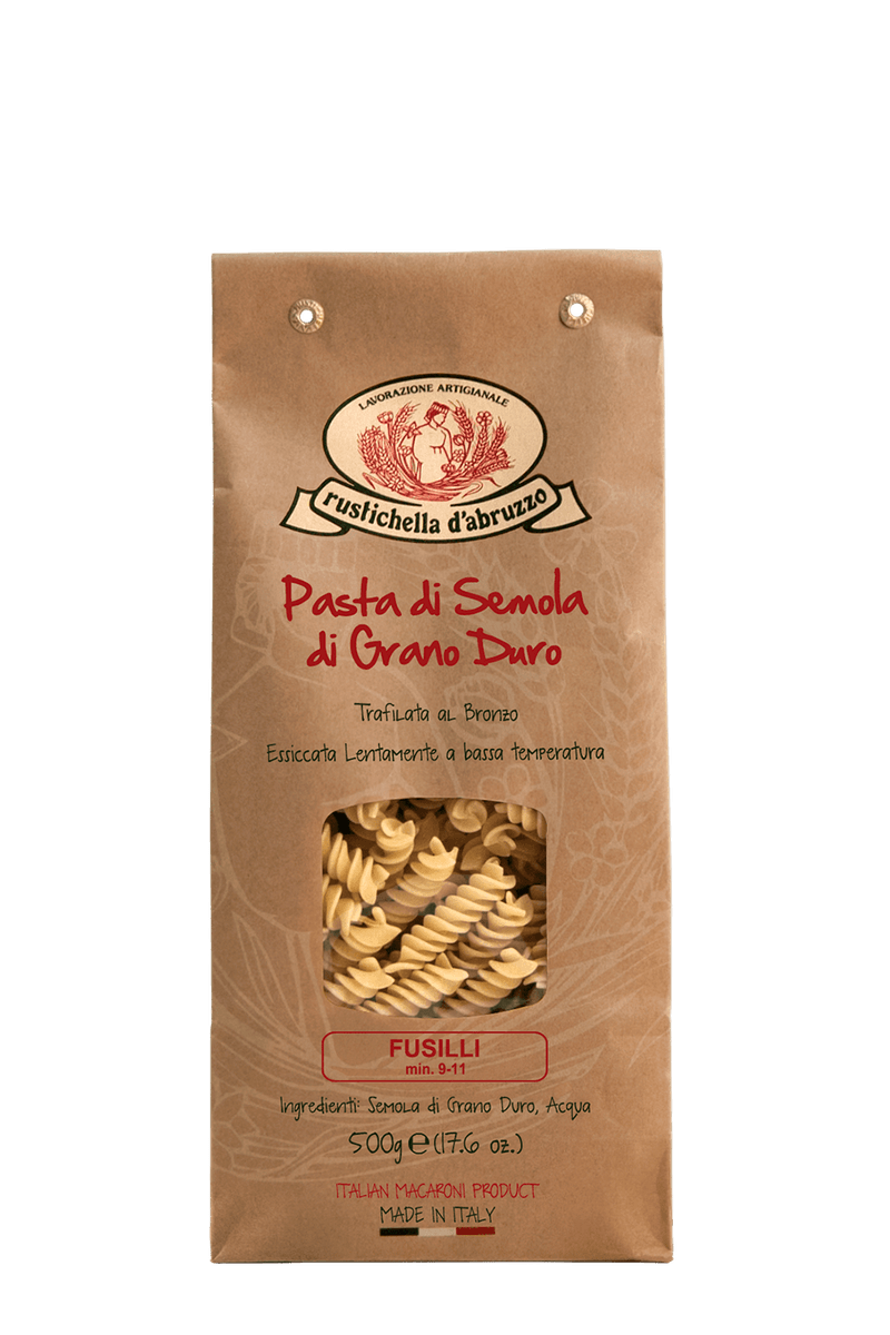 VOCÊ ESTÁ COMPRANDO: MACARRÃO RUSTICHELLA D'ABRUZZO FUSILLI 500G_x000D_<br /> _x000D_<br /> PAIS DE ORIGEM: ITÁLIA_x000D_<br /> _x000D_<br /> SOBRE O PRODUTO:_x000D_<br /> _x000D_<br /> O famoso fusilli, massa com formato semelhante a um parafuso, é ideal para ser servido com molhos mais encorpados ou à base de queijo. Também pode ser preparado em pratos frios e saladas. Produzido artesanalmente com grano duro 100% italiano de alta qualidade, que traz derivados do trigo com mais proteínas. Feito em moldes de bronze - "trafilata al bronzo" -, que deixam a massa mais áspera e permitem mais absorção dos molhos. Além disso, tem secagem mais lenta em temperaturas mais baixas, preservando o sabor e o aroma do trigo._x000D_<br /> _x000D_<br /> _x000D_<br /> A Rustichella d’Abruzzo foi fundada em 1924, na Itália. O conhecimento, a paixão e a tradição fizeram com que a Rustichella se transformasse em uma marca superpremium, presente em mais de 65 países._x000D_<br /> _x000D_<br /> O que torna a Rustichella tão especial é o processo artesanal por meio do qual suas massas são feitas. Os melhores grãos são selecionados, a água utilizada no preparo da massa é extraída de uma montanha da região que proporciona um sabor único. Além disso, todas as massas Rustichella, dos cortes tradicionais aos especiais são trafilatas al bronzo, nome do processo que dá uma especial textura (áspera) à pasta, tornando mais fácil a absorção de molhos e aprimorando qualquer tipo de receita. As massas também passam por um lento processo de secagem em baixas temperaturas que pode ultrapassar 50 horas, preservando o sabor e aroma do trigo._x000D_<br /> _x000D_<br /> Em respeito à natureza, a Rustichella utiliza somente embalagens 100% recicláveis, tingidas com tintas naturais. Todo esse cuidado resulta em um produto muito especial, como uma massa feita em casa.